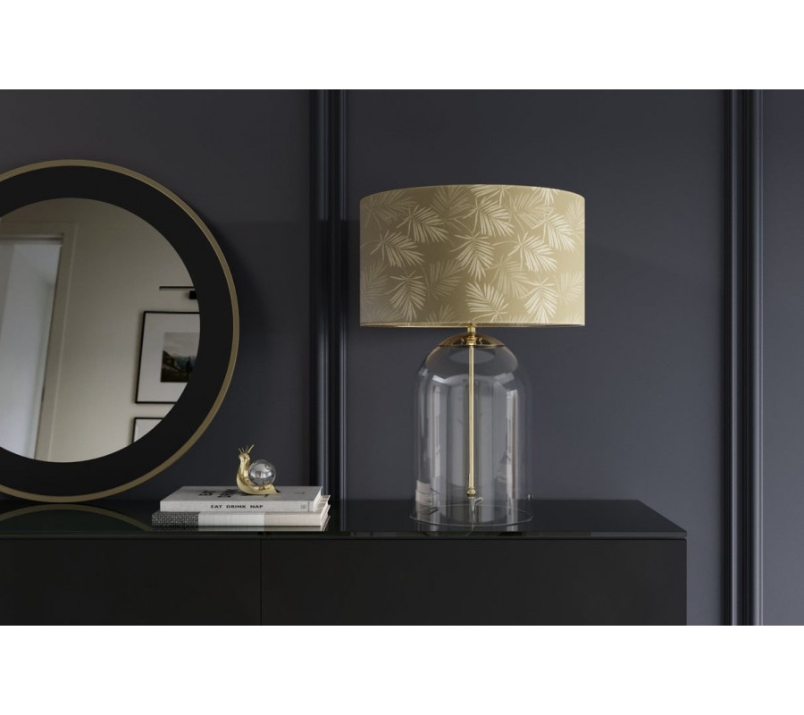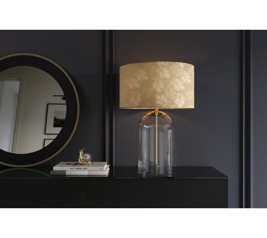 Stolná lampa Gambier prinesie do vašej obývačky či jedálne dotyk štýlovej glamour estetiky. Vzor tienidla pôsobí exotickým dojmom, zatiaľ čo kombinácia zlatej farby a priehľadného skla dodáva svietidlu nádych luxusnej elegancie.