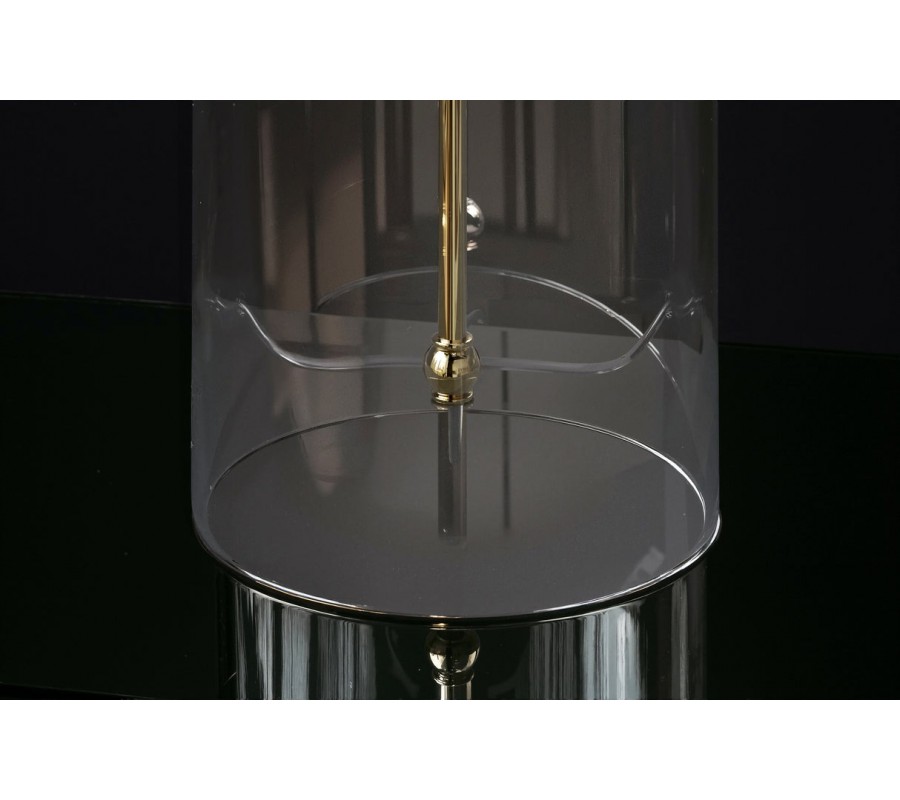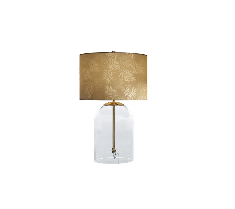 Tienidlo je upevnené na kovovej konštrukcii v zlatej farbe s objímkou na žiarovku typu E27, ktorá nie je súčasťou balenia. Vo vrchnej časti je konštrukcia ukončená guličkou. V spodnej časti prechádza vertikálna centrálna os cez transparentnú nohu lampy a vytvára tak zaujímavý vizuál. Stabilné spojenie s podstavou zaisťuje kovová čiapočka na jej vrchnej časti. Noha lampy je vyrobená z priehľadného skla a svojím tvarom pripomína zvon s okrúhlym pôdorysom a zaoblenou vrchnou časťou.