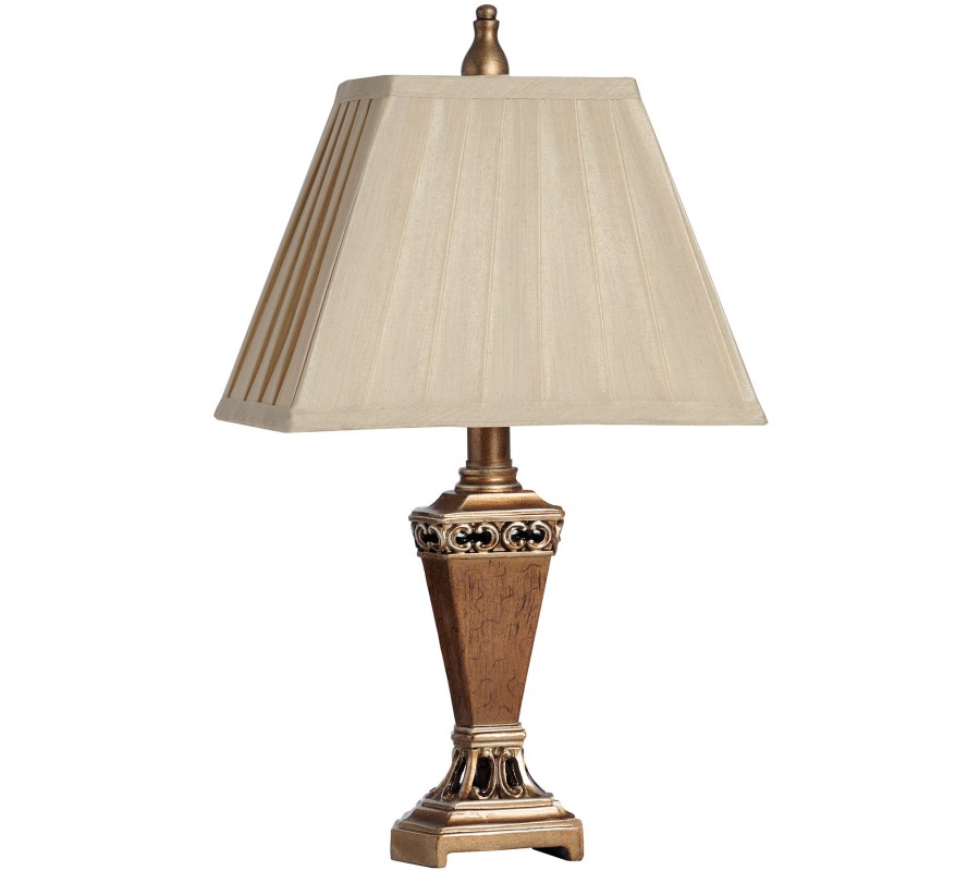 Nočná lampa s béžovým tienidlom na nohe s jemným zdobením sa hodí do moderného ako aj retro interiéru.