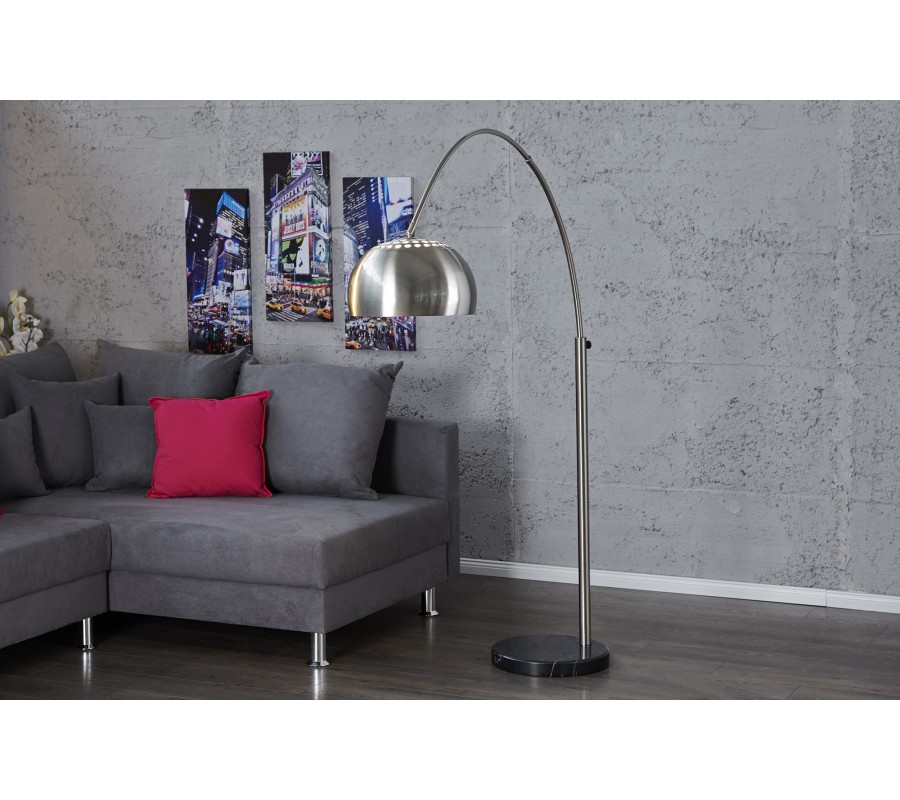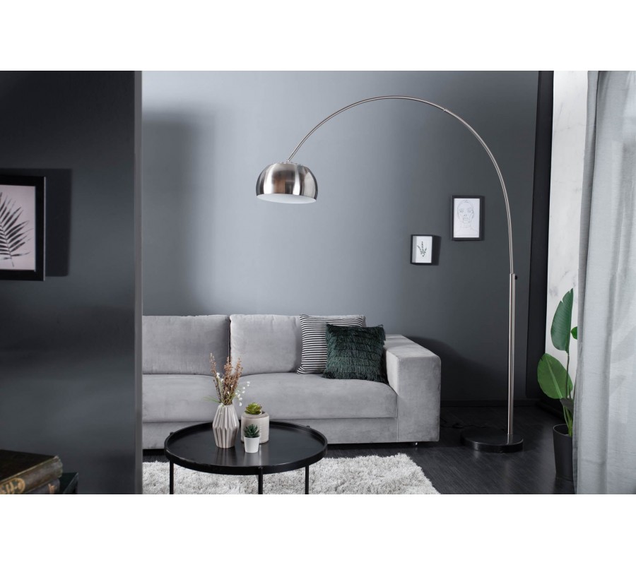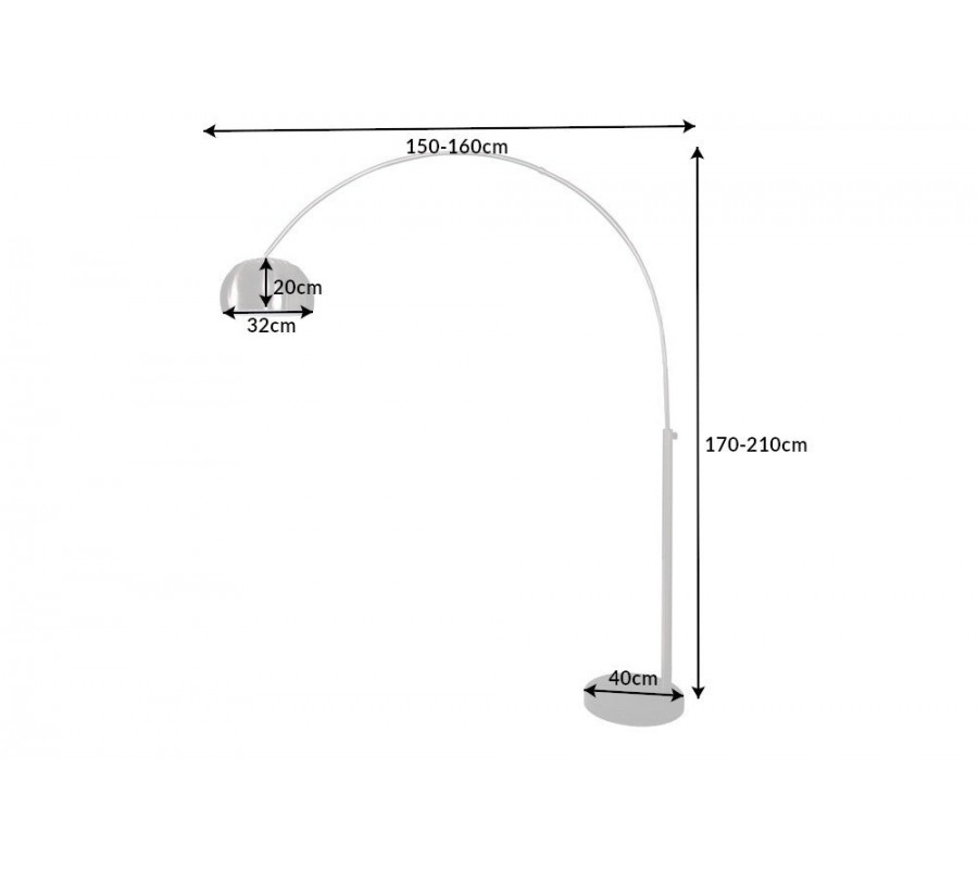 Dizajnová moderná stojaca lampa Big Bow II je charakteristická neprekonateľnou kombináciou dizajnu, teplého a jemného osvetlenia očarí Vás ako aj Vašich hostí. Výšku lampy a polohu svietidla je možno ľahko meniť v závislosti od nastavenia. Pre stabilitu a trvanlivosť základňa je vyrobená z čierneho mramoru, a tak sa skvele hodí do moderného prostredia. Rozmery: 170-210 cm x 34 cm (ŠxV) Materiál: chróm, mramor Farba: brúsený chróm, čierna Svetelný zdroj: 1 x E27 max. 60 Watt. Lampa sa dodáva bez žiarovky.