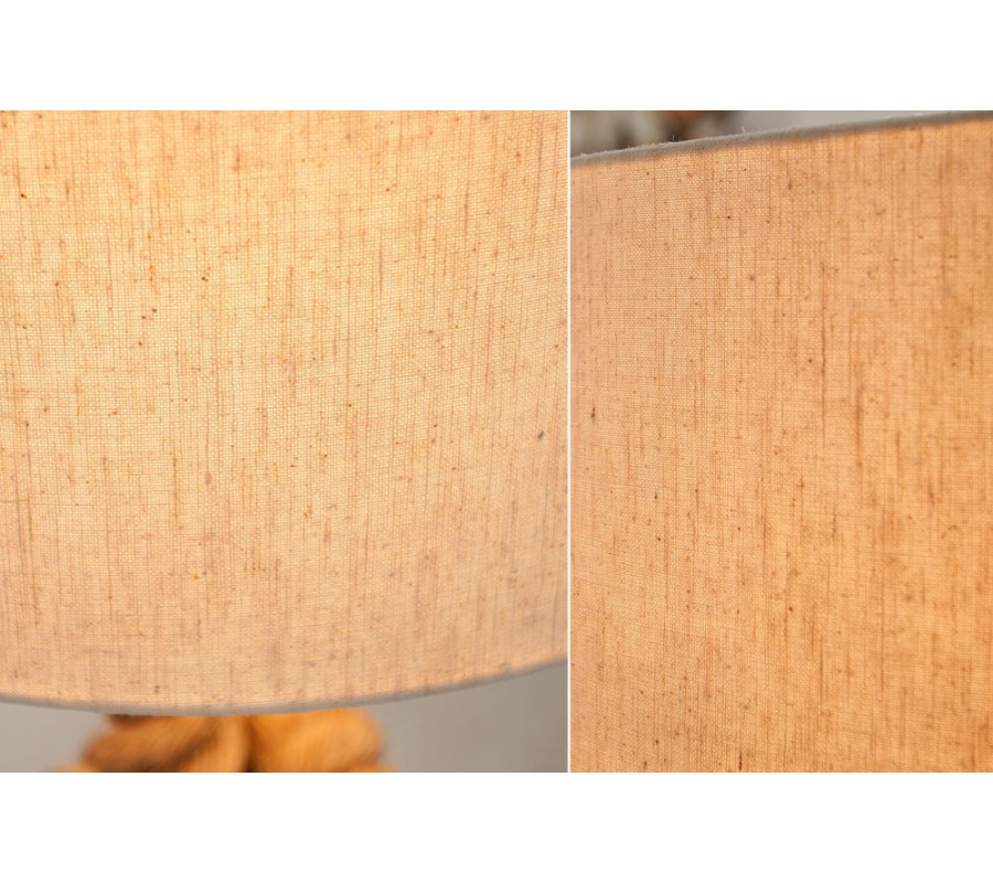 Štýlová stojaca lampa Marinero z abakového vlákna (banánovník) je unikátnym kusom koloniálneho osvetlenia. Z lampy sála autentická cestovateľská aura, ktorá vnesie do každého interiéru nádych osobitosti a dobrodružstvo. Tienidlo lampy je zhotovené z hrubej juty. Rozmery: Výška: 160 cm Celkový priemer: 45 cm Farba: krémová prírodný Materiál: manilské konope, juta, ľan Žiarovky: 1 x E27 max. 60 W Energetická trieda: A ++ až E Ručne vyrobené. Každá lampa je jedinečná dodávka bez žiarovky.