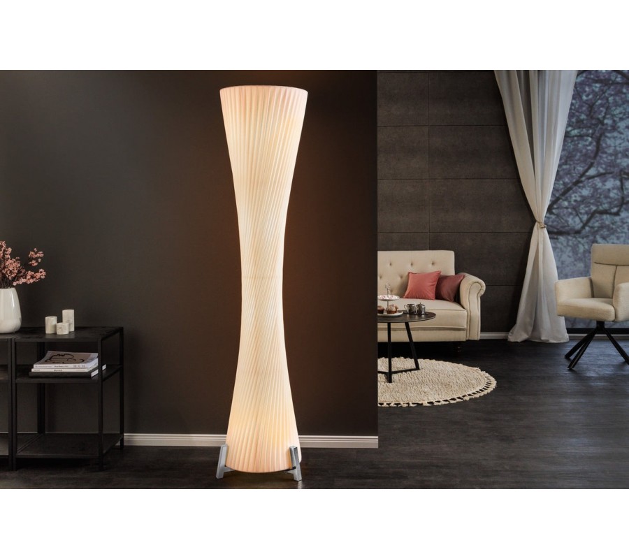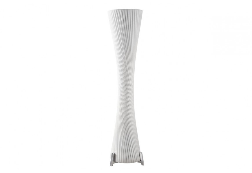 Moderná biela okrúhla vysoká lampa Helix so zatočením a striebornou kovovou podstavou 180 cm