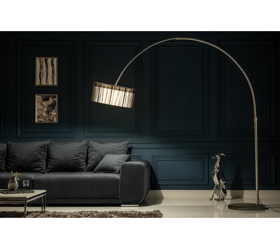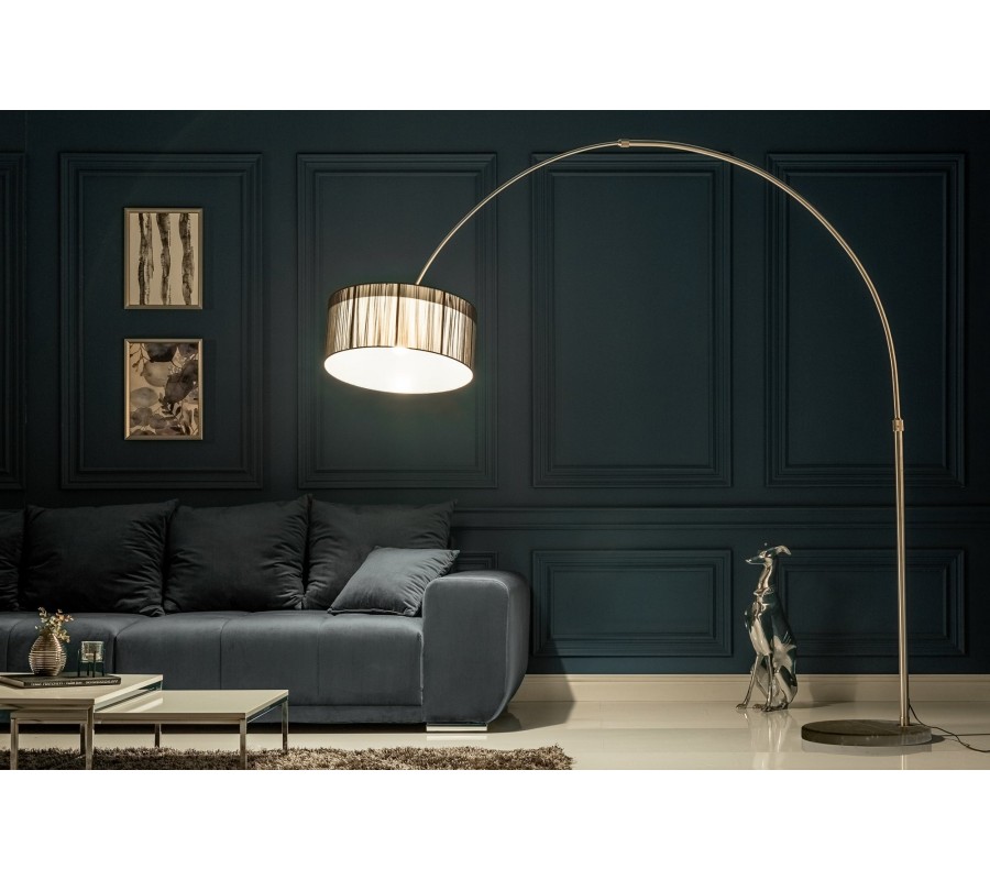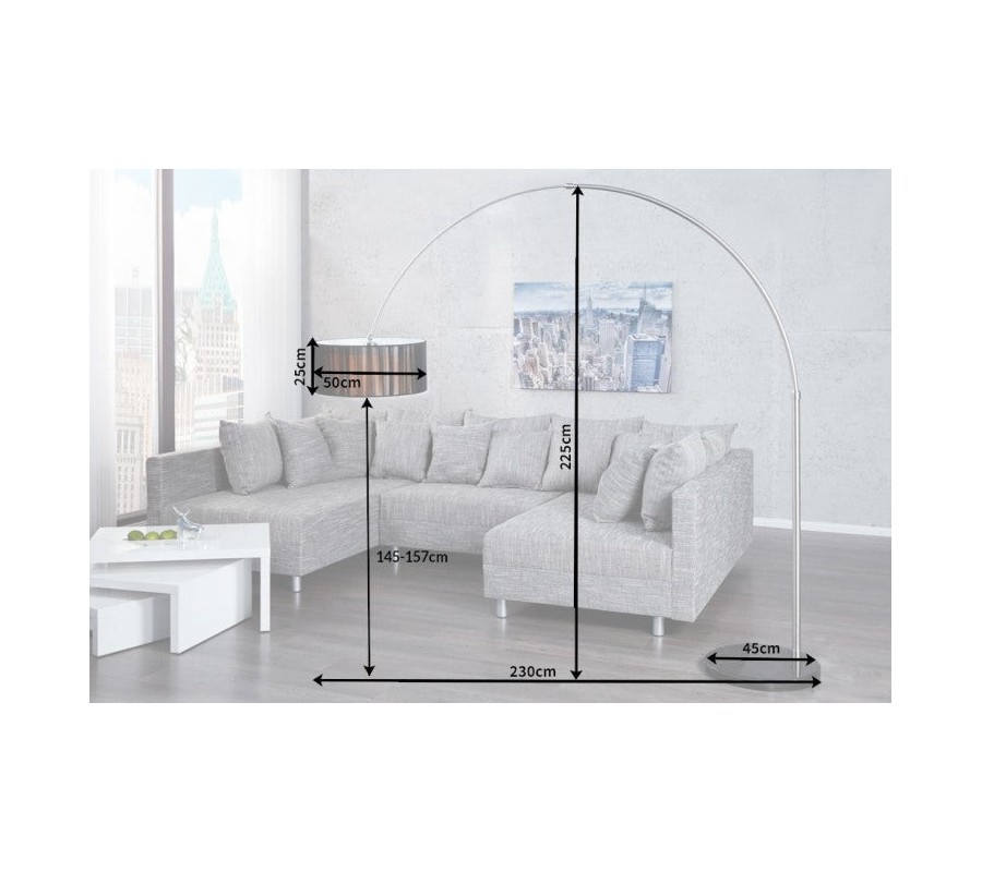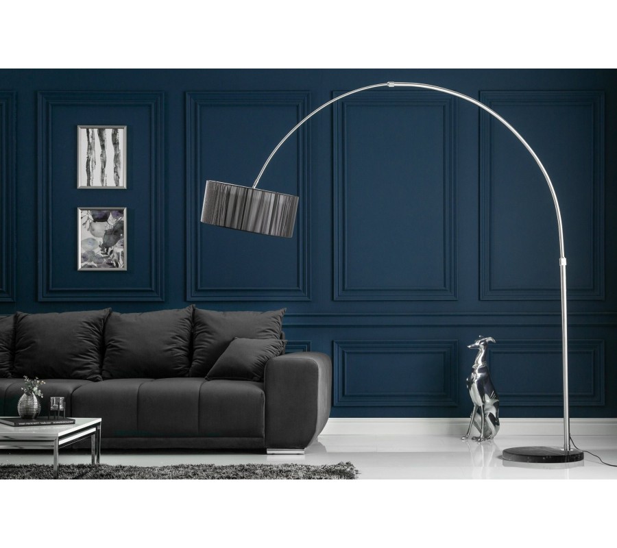 Štýlová stojaca lampa v čiernom prevedení je unikátnym doplnkom do moderne zariadených priestorov. Rozmery: 230cm x 225cm; priemer tienidla: 45cm; výška tienidla: 25cm. Lampa je prispôsobená pre žiarovku s maximálnym výkonom 60W, E27. Materiál: nylon, polypropylén, kov.