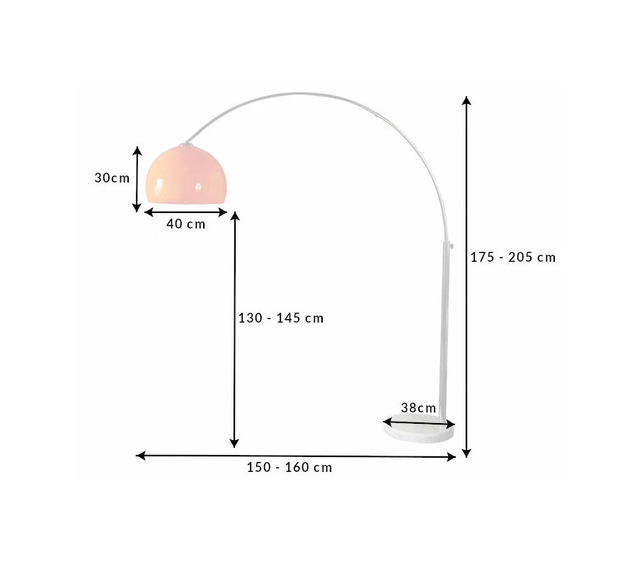 Dizajnová jedinečná stojaca lampa Big Bow II s mramorovým podstavcom sa hodí do moderne zariadených interiérov. Elegantná stojaca lampa je prispôsobená pre žiarovku s maximálnym výkonom 60W alebo E27. Rozmery: 175-205cm Priemery tienidla: 40cm