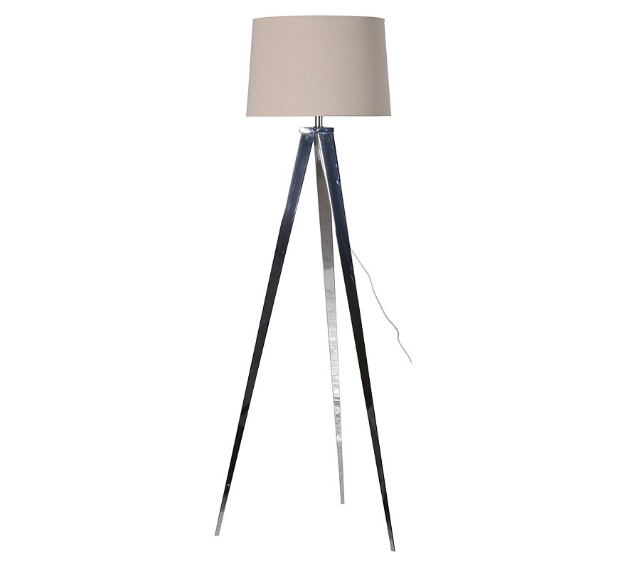 Štýlová art deco moderná stojaca lampa Mada s tromi chromovanými nožičkami a béžovým ľanovým tienidlom 152 cm