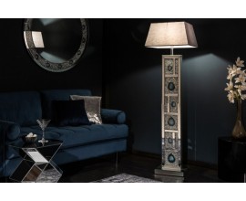 Jedinečná stojaca lampa Roodwuk sa stane dominantou každého luxusného interiéru. Majestátna vysoká podstava je vyrobená zo zrkadlových častí, ktoré sú vyplnené množstvom sklenených kryštálov s kontrastnými kameňmi achátu. Podstava sa tak stáva honosným šperkom svietidla a je doplnená neutrálnym sivým hranatým tienidlom kónického tvaru. Vysokú stojacu lampu môžete použiť ako praktický prvok v luxusnej obývačke, jedálni a v hale, ako doplnok k toaletnému stolíku v spálni či ako spríjemnenie atmosféry v reprezentatívnych priestoroch vašich firiem, salónov a luxusných reštaurácii. K lampe odporúčame žiarovku s maximálnym výkonom 60 W E27, ktorá nie je súčasťou balenia.