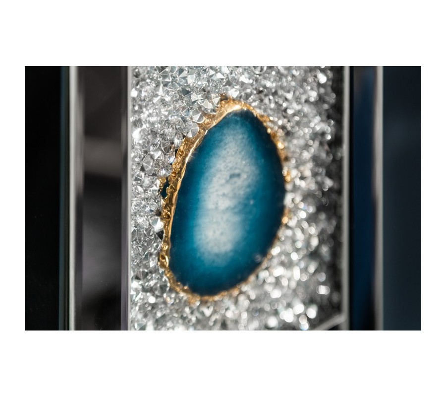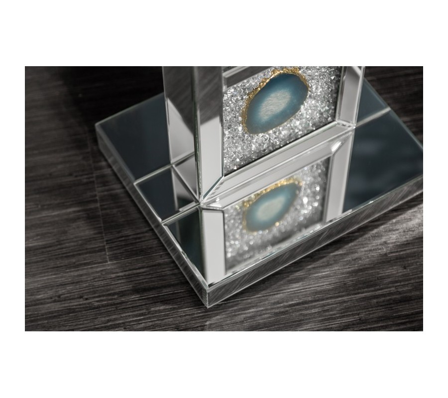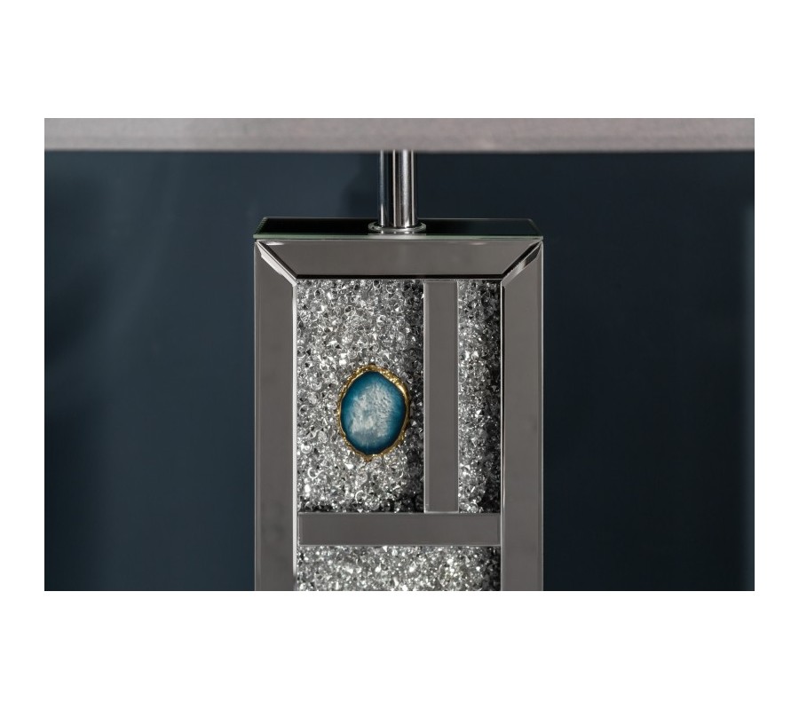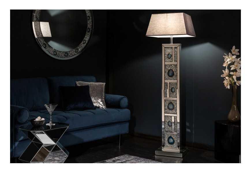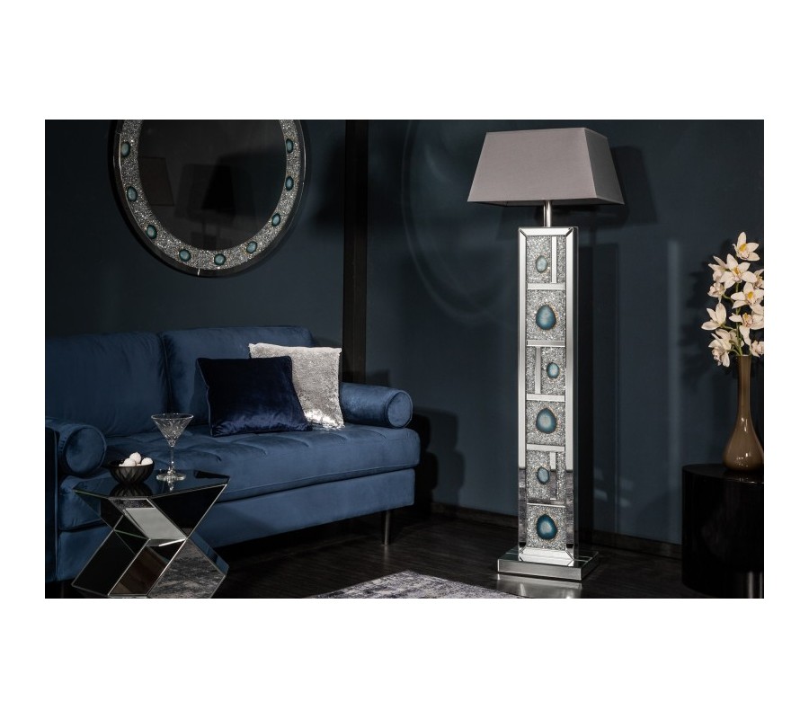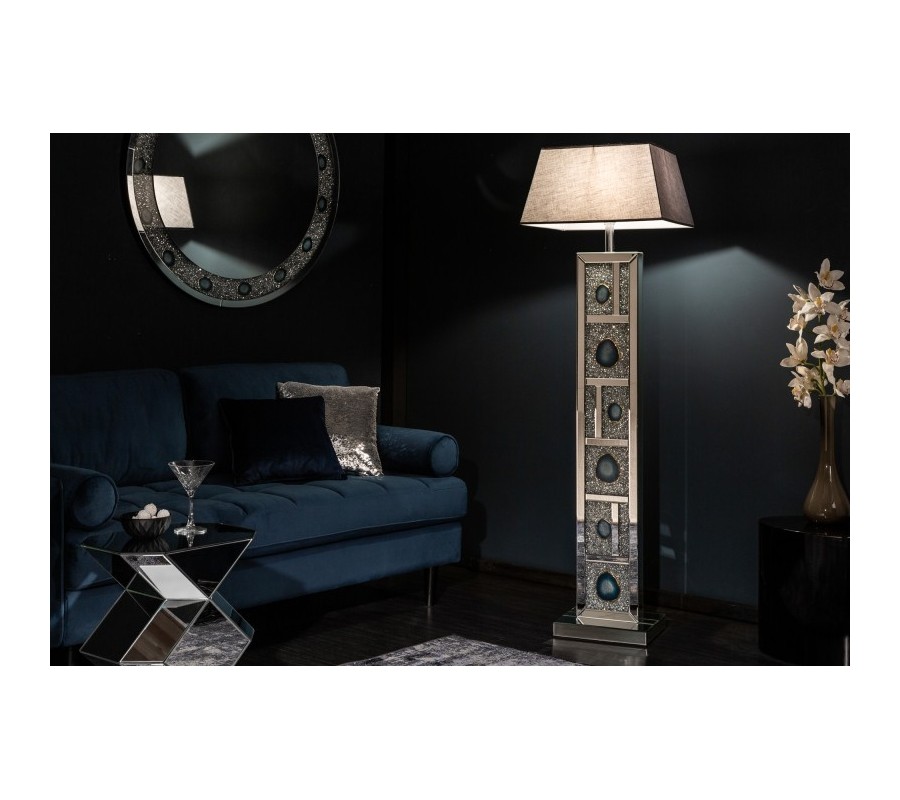 Zrkadlová luxusná stojaca lampa Roodwuk s kryštálmi a modrým achátom 159cm
