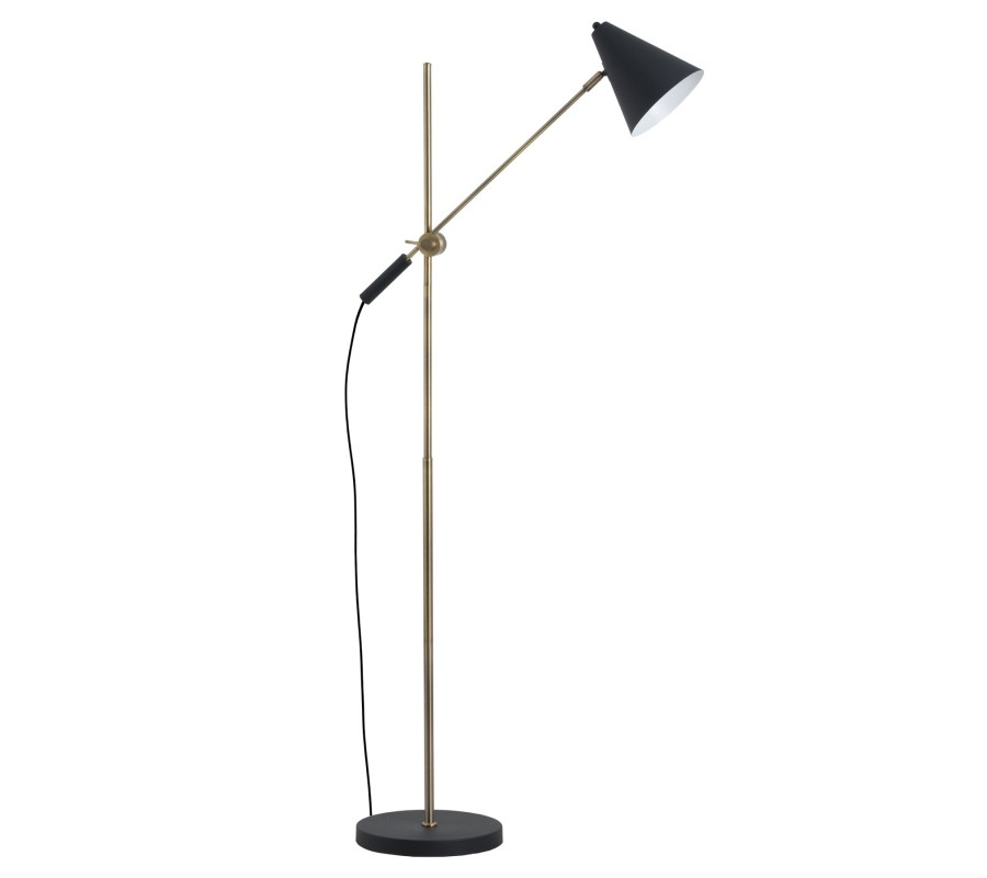 Dizajnová stojaca lampa v nadčasovej farebnej kombinácii čiernej a zlatej sa svojim vzhľadom hodí najmä do moderne a industriálne zariadených priestorov. Praktickým doplnkom je možnosť výškového prispôsobenia, čo oceníte napríklad pri čítaní či pri práci. Materiál: kov
