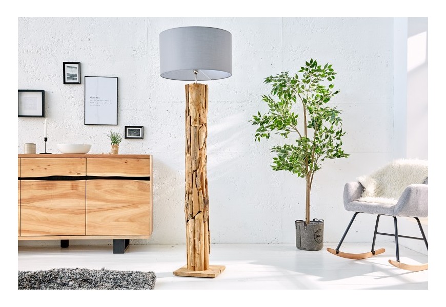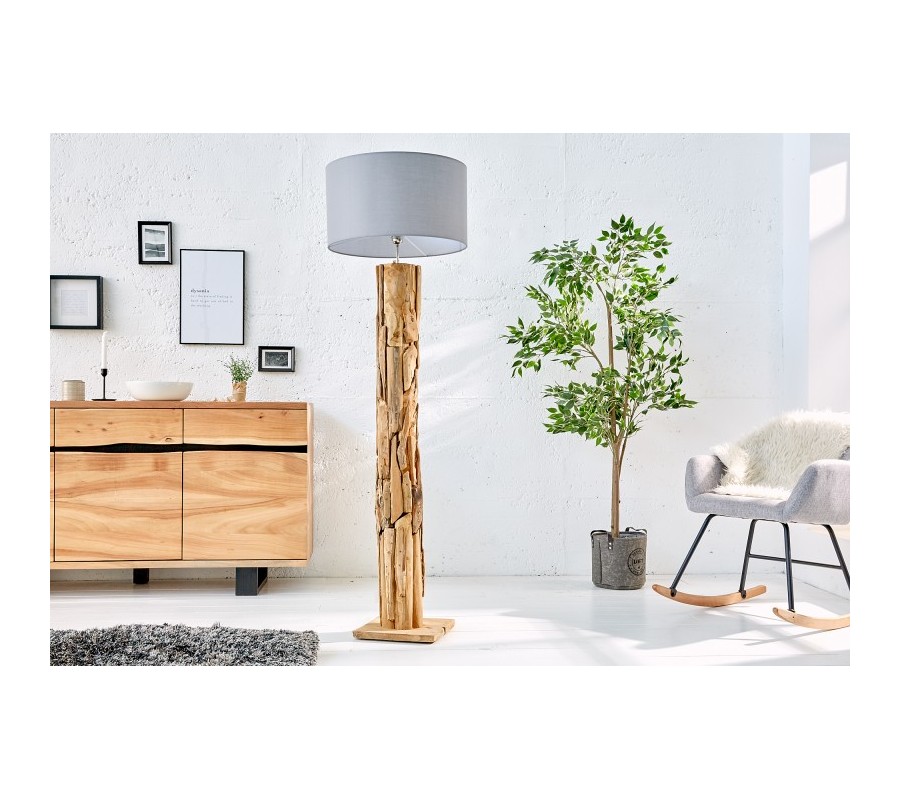 Štýlová stojaca lampa Adelise II je vyrobená z kvalitného masívneho dreva s tienidlom z ľanu. Prirodzene abstraktné tvary masívneho náplavového dreva sa dokonale snúbia s kruhovým tienidlom, ktoré divokosť prirodzených línií perfektne vyvažuje. Vďaka bledým odtieňom hnedého dreva a sivej farbe tienidla dokáže táto vkusná lampa zapadnúť do minimalistických domácností, či už v škandinávskom alebo inom modernom štýle. Kombinujte s výraznejšími či pastelovými kúskami v zemitých odtieňoch a dostaví sa Vám vizuálne dokonalý výsledok.