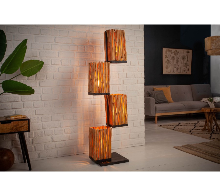 Koloniálna vysoká stojaca lampa Euphoria z naplaveného dreva 154cm