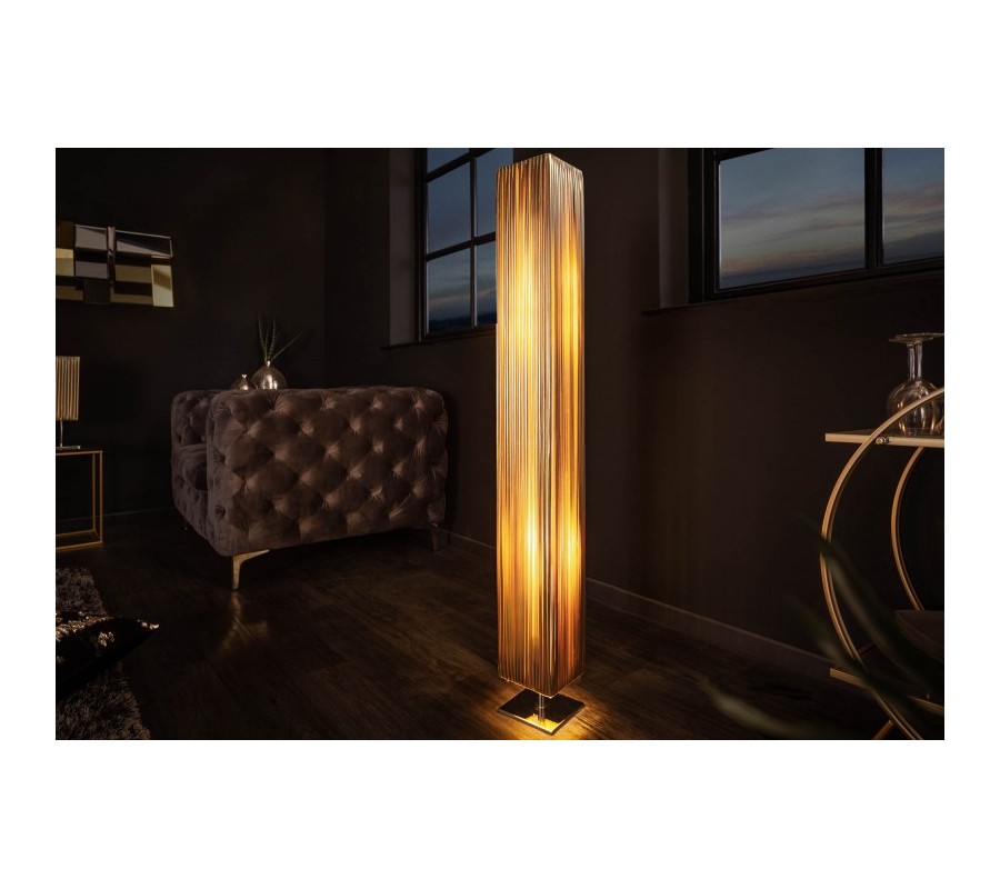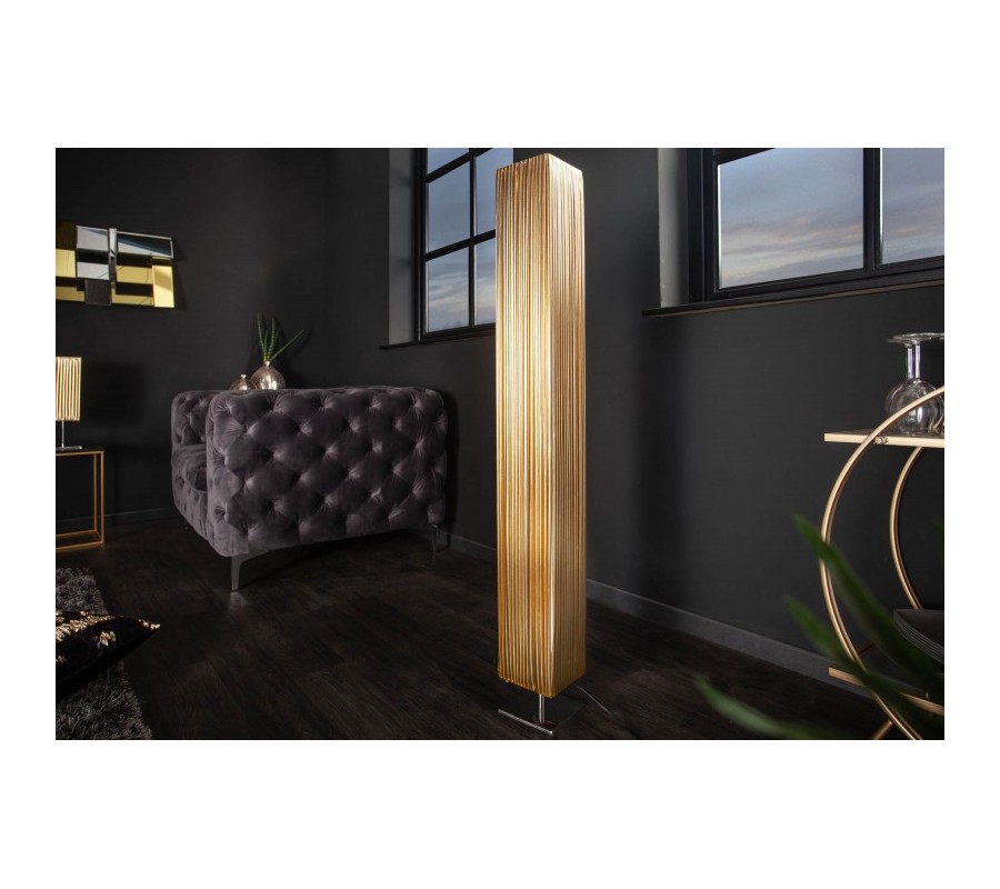 Moderná stojaca lampa Paris s látkovým tienidlom zlatej farby 120cm
