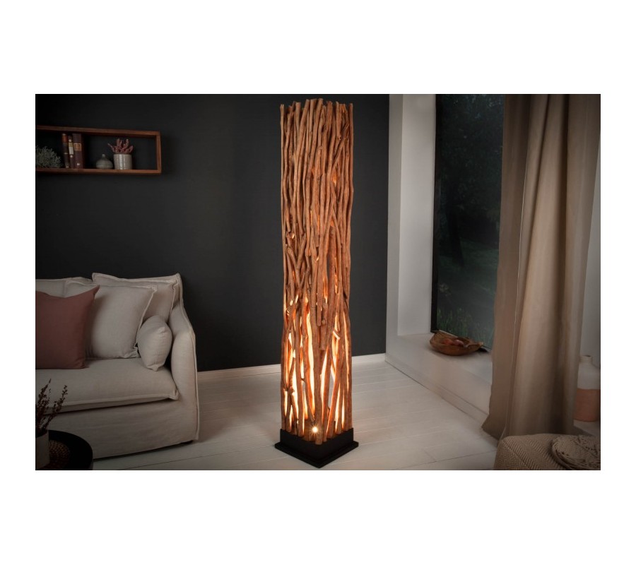 Vidiecka štýlová stojaca lampa Euphoria z masívneho dreva 178cm