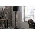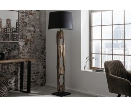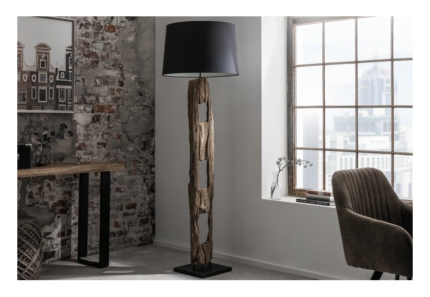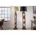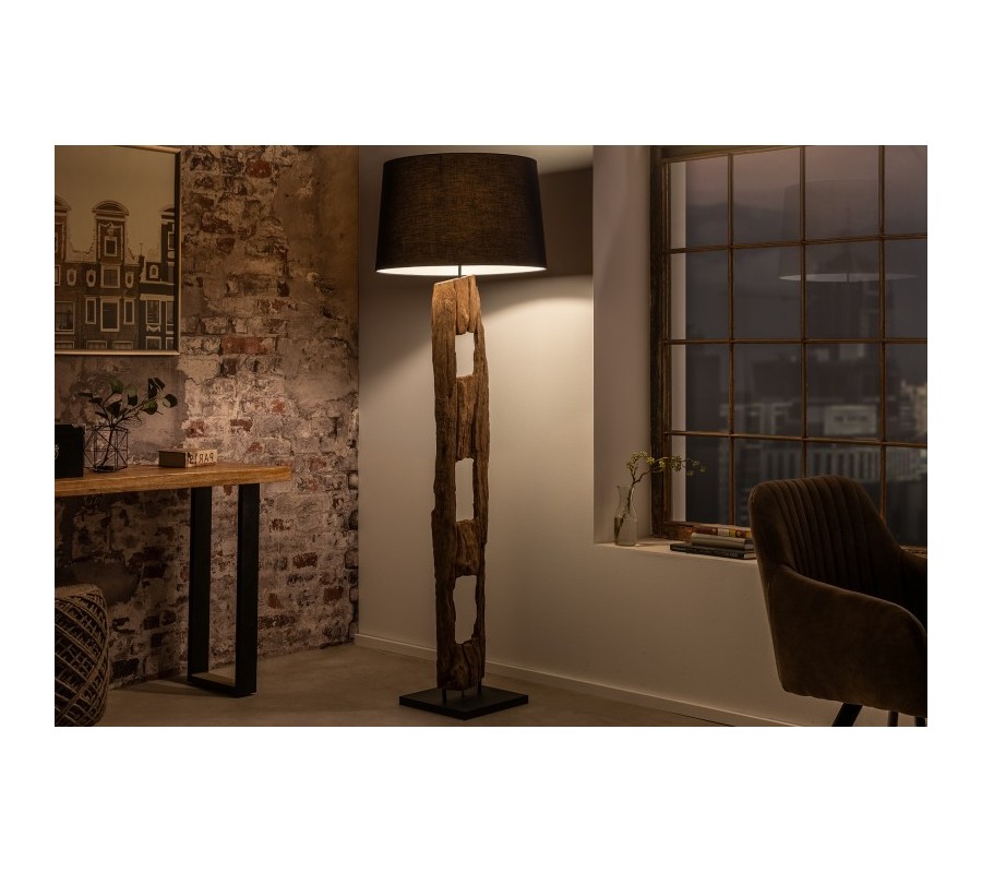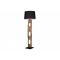Etno stojaca lampa Adelise s drevenou podstavou a čiernym tienidlom 177cm