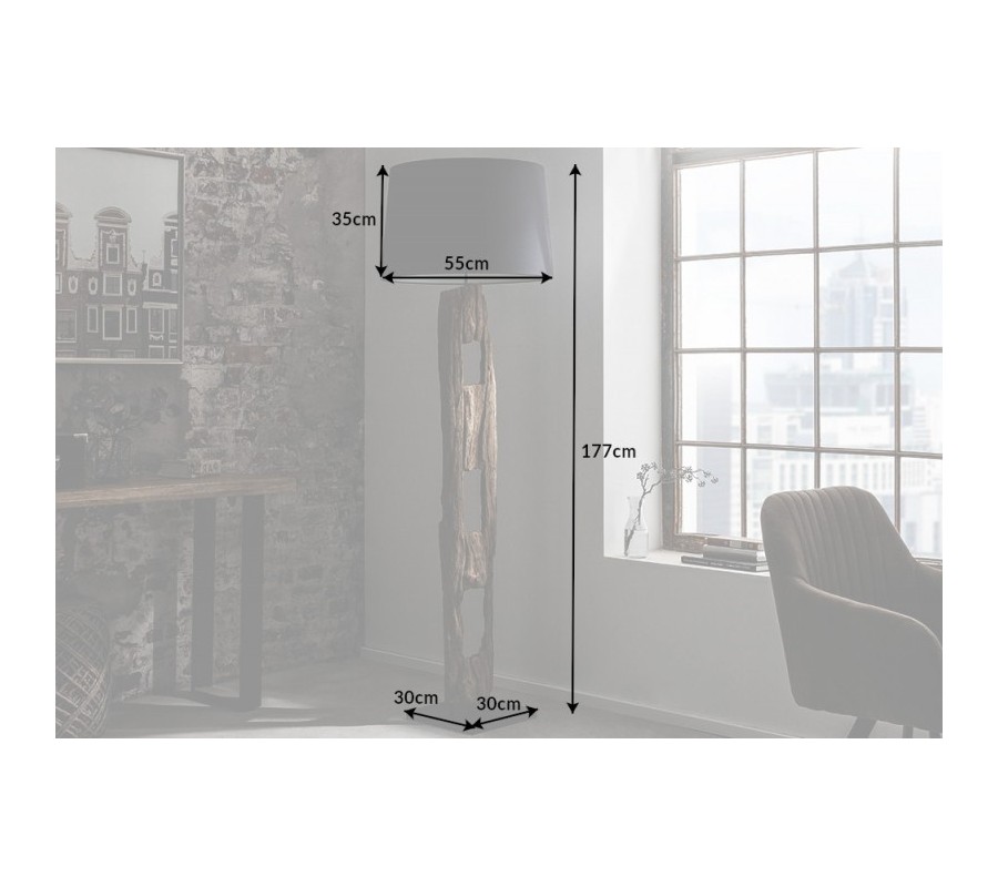 Śtýlová stojaca lampa Adelise do vášho interiéru vnesie svieži prírodný nádych. Je tvorená podstavou z masívneho dreva v naturálnej hnedej farbe, vďaka čomu krásne zapadne do vidieckych či etno ladených priestorov. Vďaka špecifickosti dreva a ručnej výrobe je každý kúsok originálom. Podstava je doplnená čiernym tienidlom z ľanu. Lampa Adelise je vhodná na umiestnenie do rohu obývacej izby, spálne či do štýlovej pracovne. Odporúčame ju kombinovať s masívnym nábytkom, čalúnenou sedačkou či kreslom a dekoráciami v etno, vidieckom alebo industriálnom štýle. Do lampy sú vhodné žiarovky typu E27 max 60W. Dodávame bez žiaroviek.