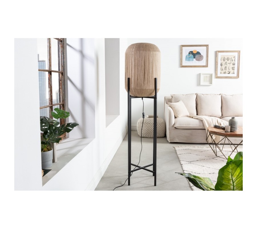 Štýlová stojaca lampa Pure Nature zaujme svojím nadčasovým materiálovým prepojením a vidieckym efektom. Jej dominantu tvorí oválne tienidlo z papierového ratanu, ktoré pôsobí štýlovým naturálnym dojomom. Ide o materiál vlákien z papierovej buničiny, ktorá bola ošetrená glejením a lepidlom a skrútená ako lano, aby sa podobala ratanovým trstinovým prameňom. Tento materiál je veľmi flexibilný a praktický, a zároveň vášmu interiéru dodá exkluzívny prírodný nádych. Tienidlo dopĺňa jednoduchá kovová konštrukcia v čiernej farbe, ktorá vytvára štýlový a nadčasový kontrast. Stojaca lampa Pure Nature vhodne doplní priestory etno či vidiecky ladených interiérov. Vhodne zapadne do interiérov štýlových obývačiek či pracovní. Do lampy sú vhodné žiarovky typu E27 max 40W.