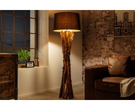 Vidiecka stojaca lampa Missle z teakového dreva v prírodnej hnedej farbe s čiernym textilným tienidlom 150cm