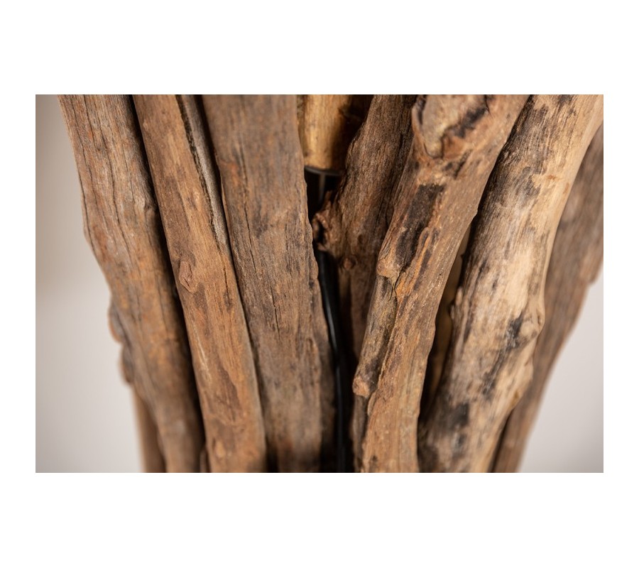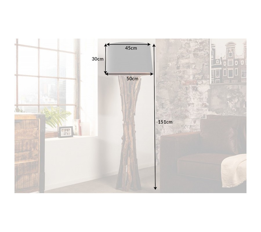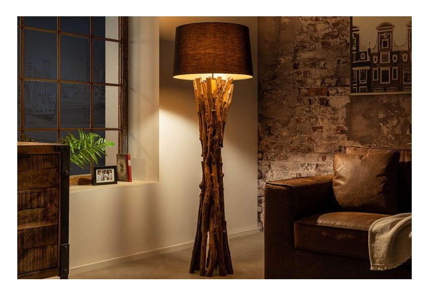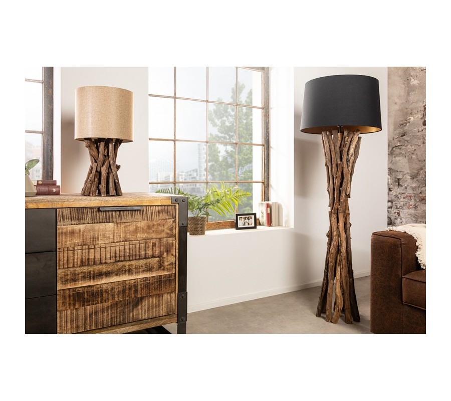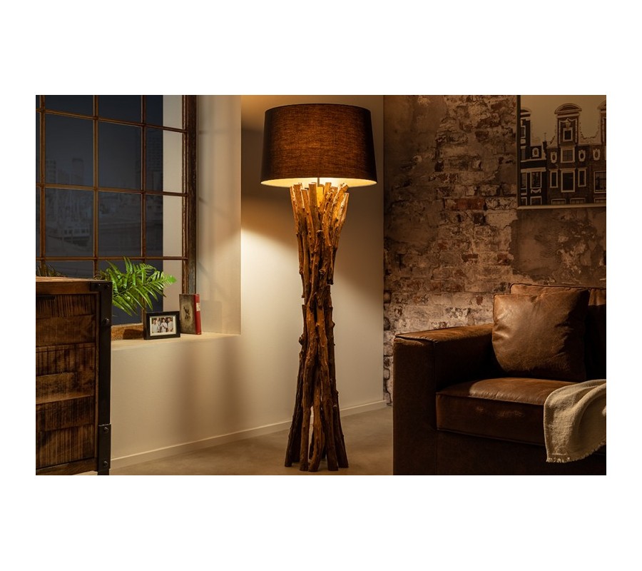 Štýlová stojaca lampa Missle sa vyznačuje svojím unikátnym naturálnym prevedením. Je vhodným doplnkom do moderných ale i industriálne ladených obývačiek, jedální, pracovní či akýchkoľvek iných miestností, v ktorých si túžite vytvoriť tú pravú atmosféru domova. Lampa Missle zaujme svojou podstavou z teakového dreva, ktorá pozostáva z prepojených hrubých konárov vytvárajúcich unikátny naturálny vzhľad. Prírodná hnedá farba podstavy je doplnená univerzálnym čiernym tienidlom so zlatým vnútrom, vďaka ktorému je svetlo lampy príjemne tlmené. Krásne sa hodí k masívnemu drevenému nábytku, koženej sedačke či kreslu a k výrazným doplnkom z prírodných materiálov alebo z kovu. Do lampy sú vhodné žiarovky typu E27 max 25W.