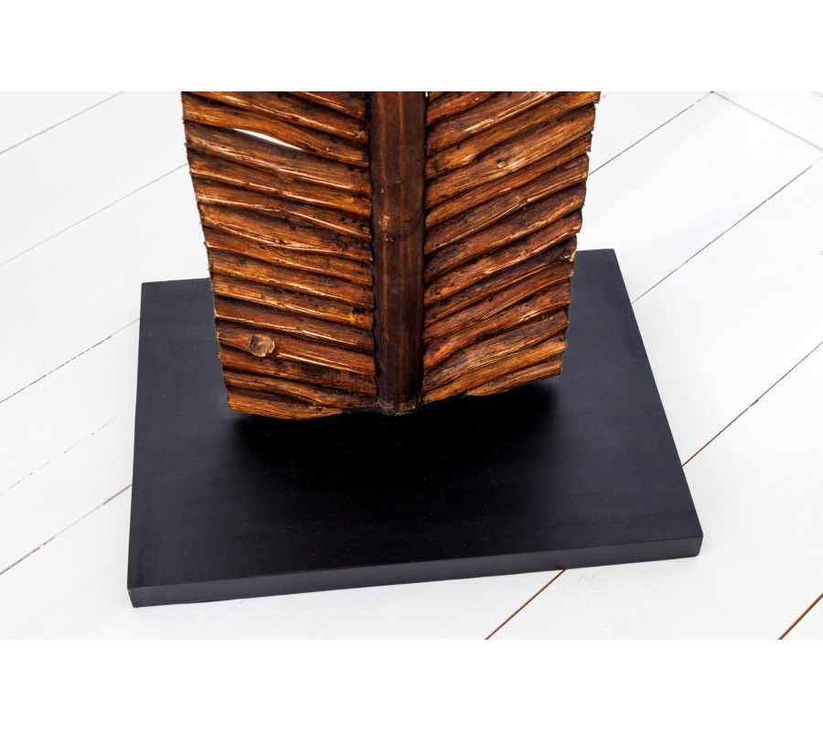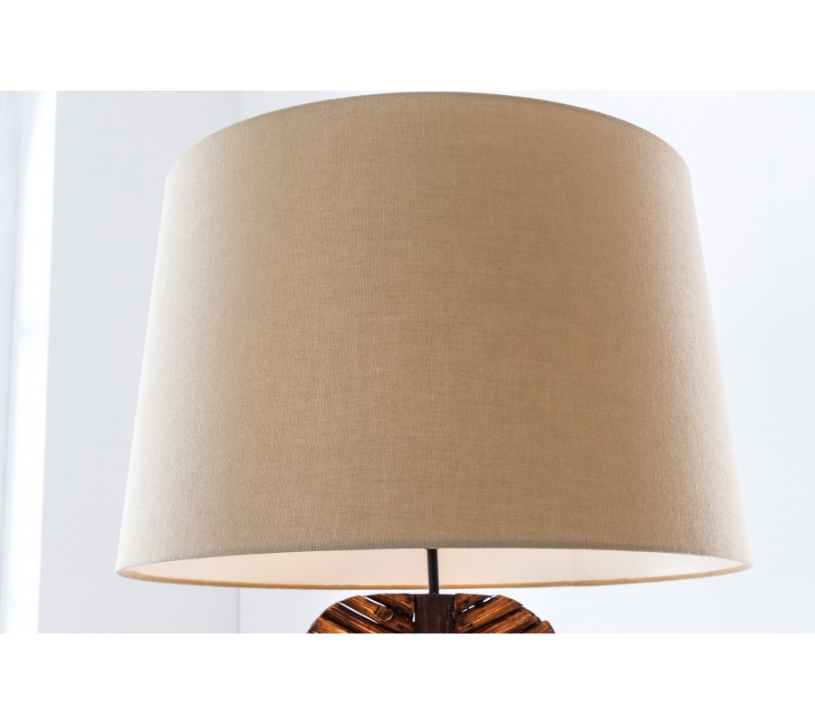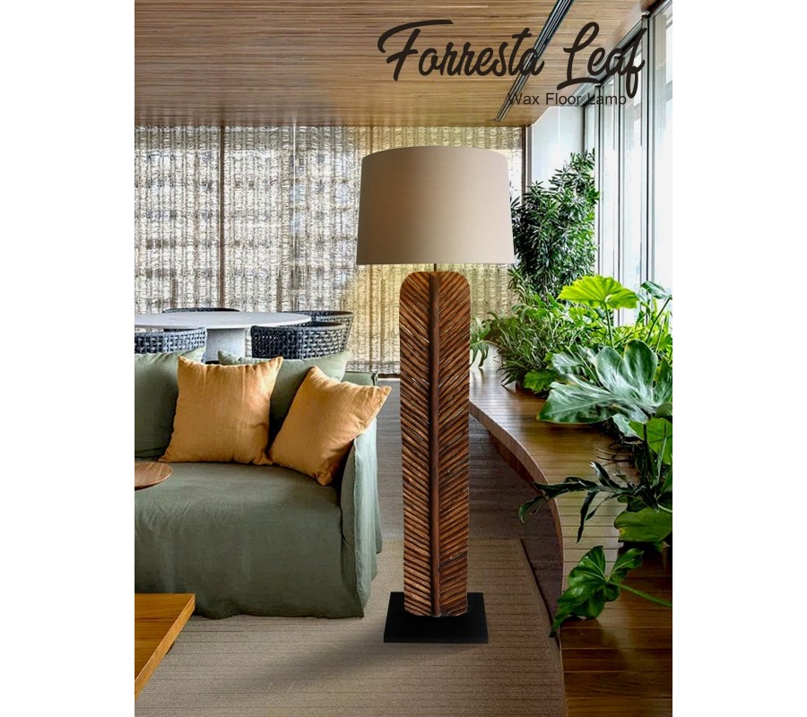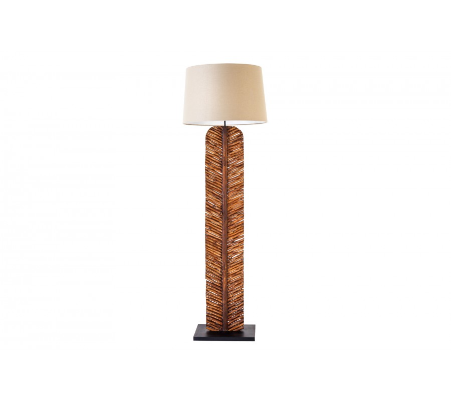 Elegantná stojaca lampa Elegia je tým pravým doplnkom do vidiecky či moderne ladenej obývačky, pracovne alebo spálne. Zaujme vďaka svojej konštrukcii z masívneho dreva, ktorá je tvorená jednotlivými opracovanými časťami pripomínajúcimi konárikmi, čo vytvára nádherný prírodný vzor v tvare lista. Naturálna hnedá farba umocňuje tento dojem a nádherne zútulní vaše priestory. Konštrukciu prírodného rázu vkusne dopĺňa jednoduché textilné béžové tienidlo. Lampa Elegia v moderných priestoroch dotvorí atmosféru domova a zároveň prakticky poslúži. Do lampy je vhodná žiarovka typu E27 max 60W.