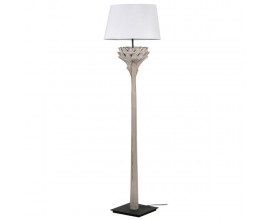 Štýlová ratanová lampa Plissé Nature s čiernou kovovu podstavou a svetlohnedým ratanovým tienidlom 150cm