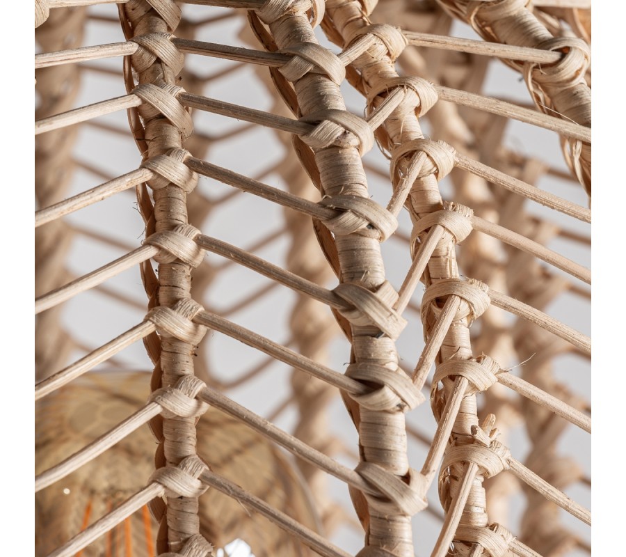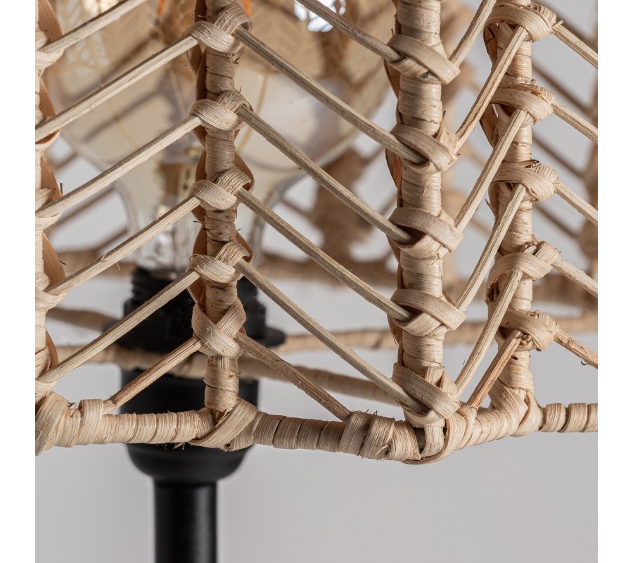 Inovatívny dizajn stojacej lampy Plissé Nature zaujme predovšetkým milovníkov prírodných materiálov a moderného elegantného vzhľadu. Toto štýlové svietidlo kombinuje materiál kovu s prírodným ratanovým drevom, čím vzniká nadčasová kombinácia. Čierna kovová podstava je vo vrchnej časti ukončená žiarovkou, ktorú dopĺňa polobläkovité tienidlo z ratanového výpletu prírodnej svetlohnedej farby. Jednoduchá, no vizuálne príťažlivá konštrukcia vhodne zapadne do moderne, ale aj vidiecky či etno ladených interiérov. Stolná lampa Plissé Nature vynikne tiež v kombinácii s nábytkom z našej rovnomennej kolekcie, rovnako ako aj s doplnkami v naturálnych farbách či iným nábytkom z masívneho dreva. Vkusne doplní tiež moderné kaviarne, čajovne či reprezentatívne firemné priestory.