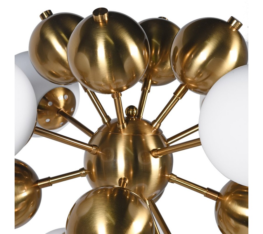 Nadčasová stojaca lampa Essna očarí svojim nadčasovým dizajnom. Jej konštrukcia je vyrobená z kovu a nesie sa v žiarivej zlatej farbe, ktorá do vašich priestorov vnesie nádych luxusu. Skladá sa zo šestnástich guľatých prvkov, ktoré sa nesú v bielej a zlatej farbe z nich je osem určených na svietenie, spolu ale môžu pripomínať aj sústavu atómov. Konštrukciu dopĺňa kruhová kovová podstava. Vynikne predovšetkým v priestoroch zariaďovaním Art-deco štýlom, pre ktorý sú typické výrazne farby, materiáli ako kov či sklo alebo geometrické tvary, ktoré su použité aj na tejto stojacej lampe. Lampa je vďaka svojmu prevedeniu vhodná aj do glamour ladených miestnostísť, vďaka luxusnému a lesklému prevedeniu jej konštrukcie.