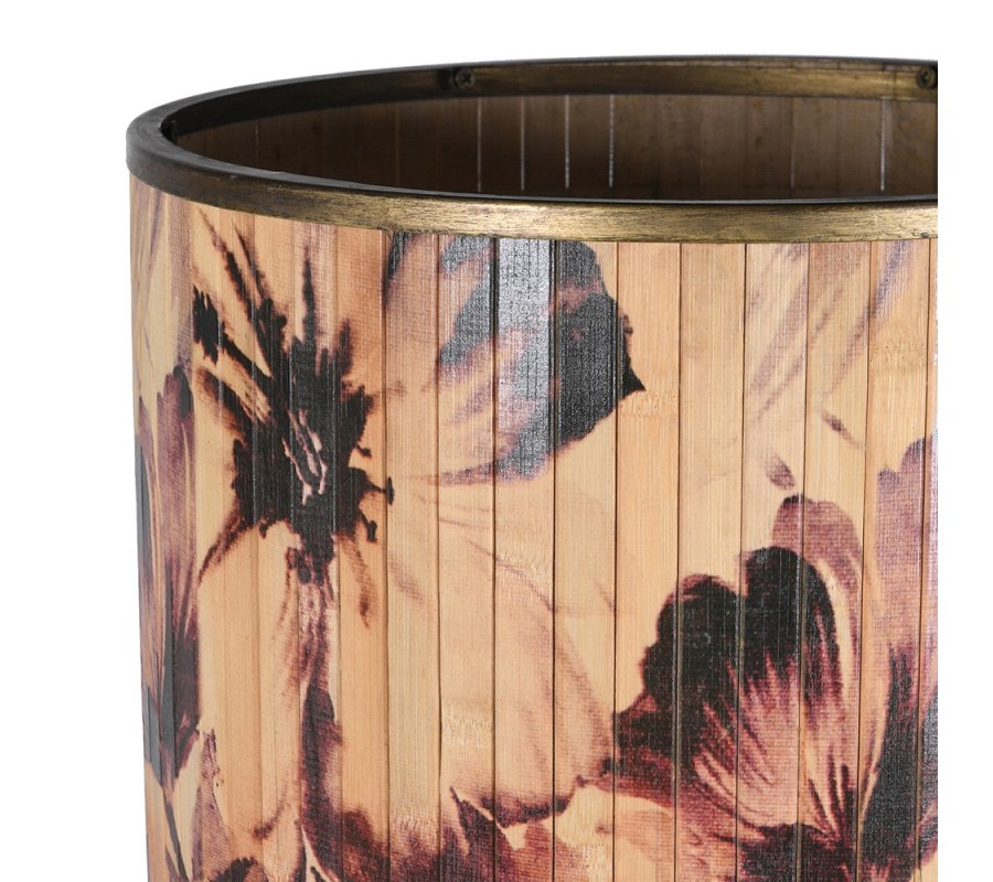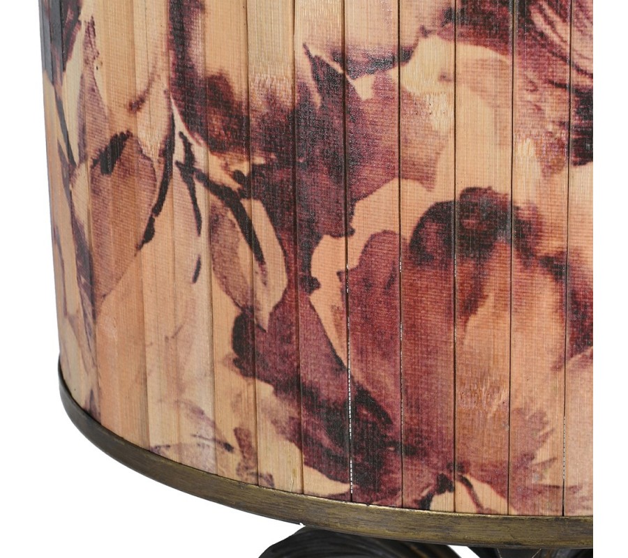 Tienidlo má svetlú béžovú farbu s oranžovými podtónmi a zdobí ho vzor detailov kvetín v odtieňoch červenej. Organický florálny motív sa výborne prepája s listami pod tienidlom a akvarelový vizuál, v kombinácii s bambusom evokuje inšpiráciu japonskými dekoratívnymi predmetmi.
