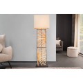 Dizajnová etno stojaca lampa Adduro s podstavou z čierneho kovu a masívneho dreva v hnedej farbe s béžovým tienidlom 165 cm
