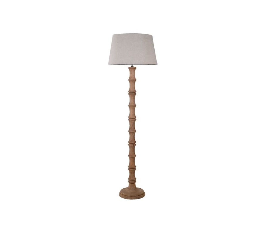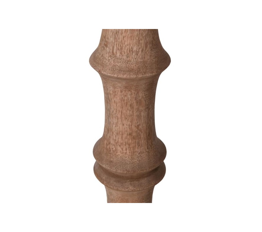 Stojaca lampa Bamb je elegantným spojením prírodného dizajnu a funkčnosti, ideálna pre interiéry s dôrazom na teplé materiály a zemitú farebnú paletu. Jej noha je vyrobená z mangového dreva, pričom štruktúra pripomína vzhľad bambusu, vďaka detailnému vyrezávaniu s pravidelnými segmentmi. Drevo má jemný prírodný hnedý odtieň, ktorý zvýrazňuje textúru a pridáva autentický vzhľad.