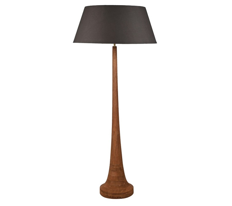 Vidiecka masívna stojaca lampa Amber s hnedou úzkou mangovou nohou a tmavo sivým balvneným kužeľovým tienidlom 162 cm