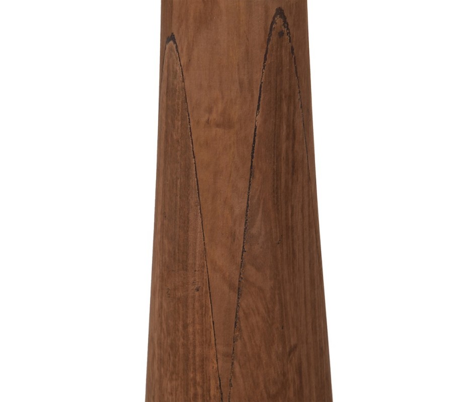 Stojaca lampa Amber má elegantný a prírodný dizajn vo vidieckom štýle. Nohu lampy tvorí jemne vyrezávané mangové drevo s hladkým povrchom, ktorý zvýrazňuje jeho prirodzenú štruktúru a drevené zrno. Farba nohy má teplý hnedý odtieň s matným povrchom, pričom spodná časť lampy je širšia a zaoblená, čím poskytuje stabilitu a estetický základ.