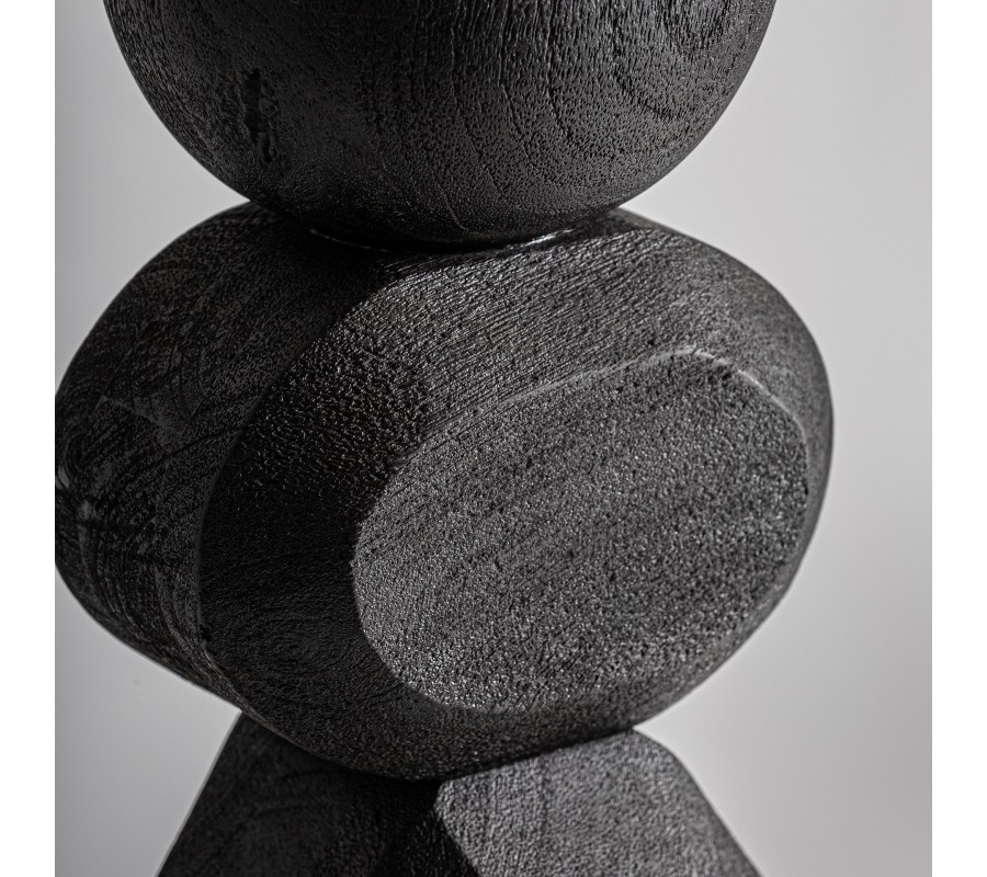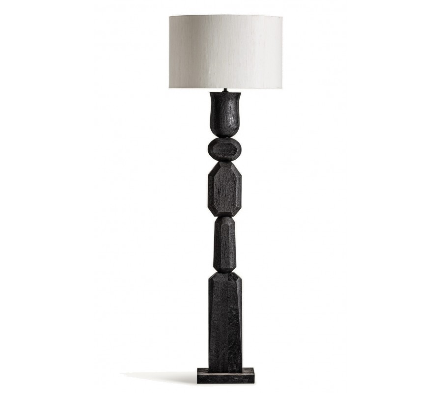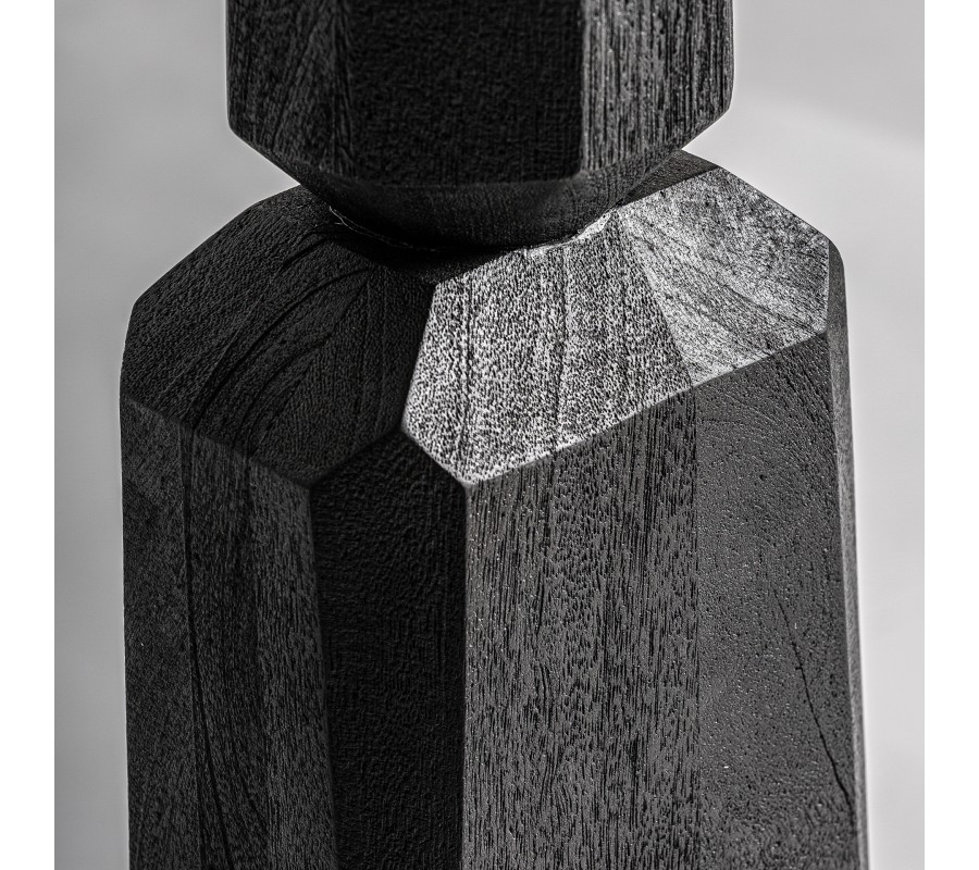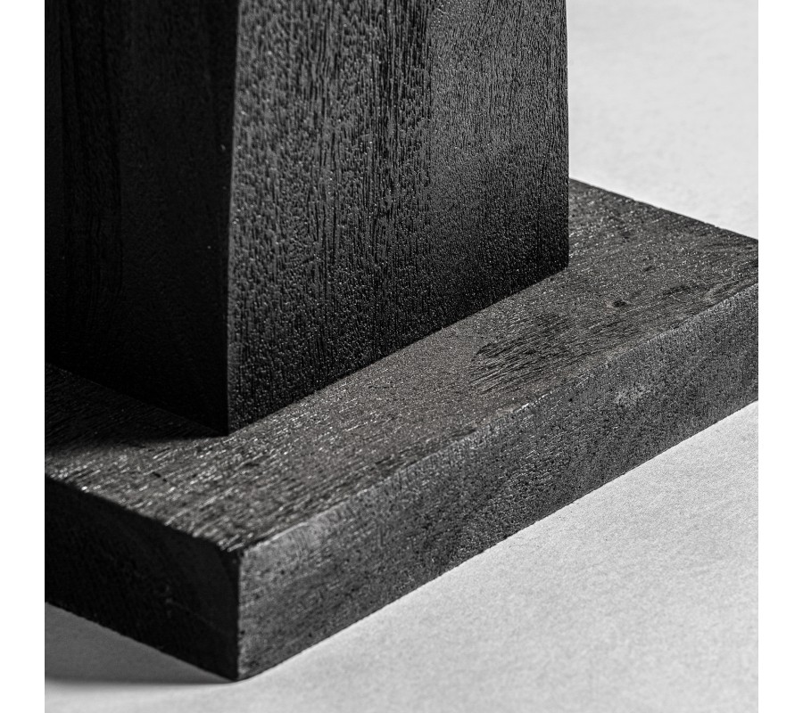 Noha lampy je vyrobená z masívneho mangového dreva s čiernym lakovaním, ktoré necháva viditeľnú prirodzenú kresbu letokruhov. Na štvorcovom podstavci je na sebe položených päť geometricky vyrezávaných prvkov, ktoré pôsobia dojmom avantgardného skulpturálneho diela. Zaoblené tvary dodávajú siluete eleganciu.