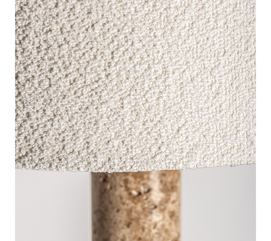 Luxusná art deco travertínová stojaca lampa Jerf s bielym valcovým bavlneným tienidlom s bouclé poťahom 166 cm