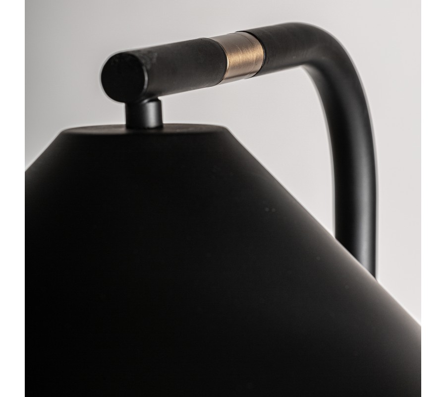 Glamour stojaca lampa Zar je exkluzívnym osvetlením v art deco a glamour štýle, ktoré kombinuje eleganciu, funkcionalitu a nadčasový dizajn. Jej vysoká štíhla kovová noha v čiernej farbe s luxusnými zlatými detailmi dodáva interiéru sofistikovaný vzhľad, zatiaľ čo kužeľovité kovové tienidlo v čiernom matnom prevedení sústreďuje svetlo priamo nadol, čím vytvára príjemnú a intímnu atmosféru. Lampa je praktická vďaka nastaviteľnému kĺbu, ktorý umožňuje jej otáčanie do strán a prispôsobenie osvetlenia podľa potreby.