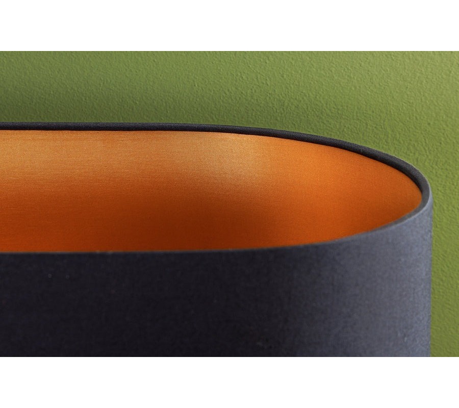 Štýlová glamour stojaca lampa Mervik prináša do interiéru originálnu kombináciu prírodných a luxusných prvkov. Valcovité tienidlo má elegantný dizajn v dvojfarebnom prevedení — zvonka hlboký čierny odtieň, vnútri teplý zlatý povrch, ktorý jemne odráža svetlo a vytvára príjemnú atmosféru.