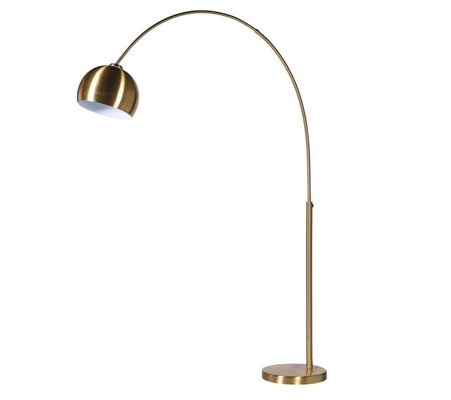 Elegantná stojaca lampa Arcus v art deco a glamour štýle zaujme svojím oblúkovým tvarom a lesklým zlatým povrchom, ktorý do interiéru vnáša luxus a noblesu. Tenká ohnutá kovová tyč ladne prechádza do okrúhlej podstavy, ktorá zaisťuje stabilitu a zároveň pôsobí minimalisticky. Kovové tienidlo v okrúhlom tvare dotvára harmonický dizajn a zabezpečuje rovnomerné rozptýlenie svetla.
