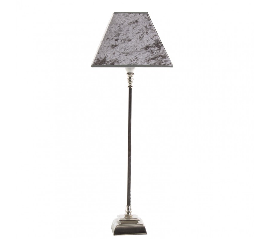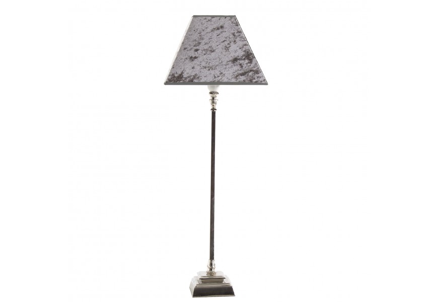Stolná lampa 72cm s nohou vyrobenou z hliníka so zamatovým tienidlom v tmavo šedej farbe.