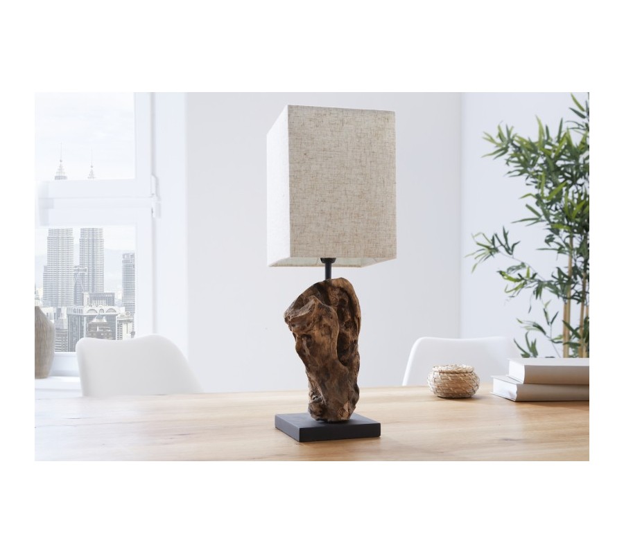 Štýlová stolná lampa s béžovým ľanovým tienidlom je krásnym doplnkom naturálne zariadených domácností. Za svoj vzhľad vďačí masívnemu drevu, z ktorého je spracovaná. Rozmery: 15cm x 45cm x 15cm; dĺžka kábla: 140cm. Lampa je prispôsobená pre žiarovku s maximálnym výkonom 40W alebo E14.