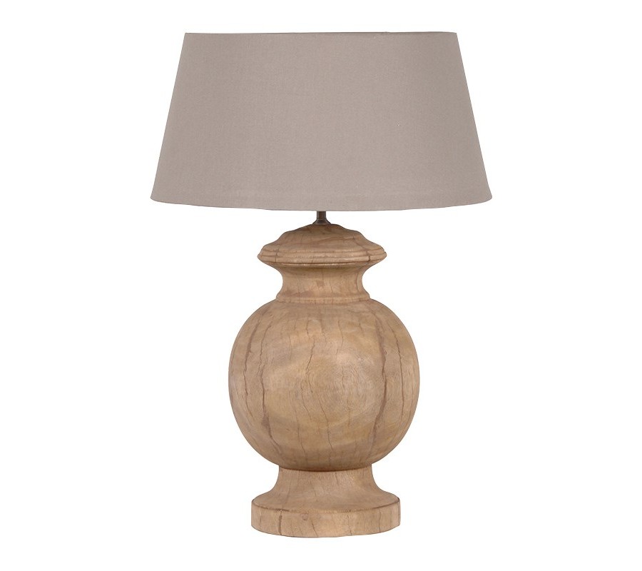 Podstava je vyrobená z masívneho mangového dreva v naturálne svetlej hnedej farbe. Má elegantnú siluetu, v ktorej dominujú krivky. Centrálny guľový element je umiestnený na rozširujúcej sa okrúhlej podstave. Vo vrchnej časti je umiestený rovnaký prvok, pripomínajúci hrdlo vázy. Povrch dreva je hladký a zdobí jemná kresba letokruhov, ktorá podčiarkuje naturálny charakter svietidla.