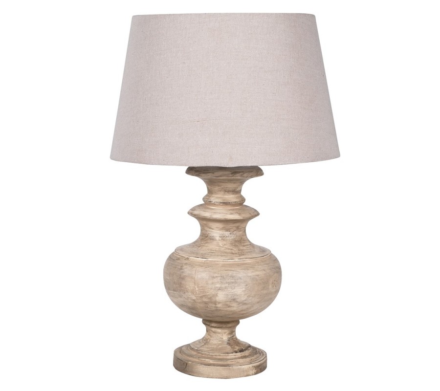 Dizajnová vidiecka stolná lampa Dawn s dreveným podstavcom z mangového dreva a okrúhlym béžovým ľanovým tienidlom 75 cm