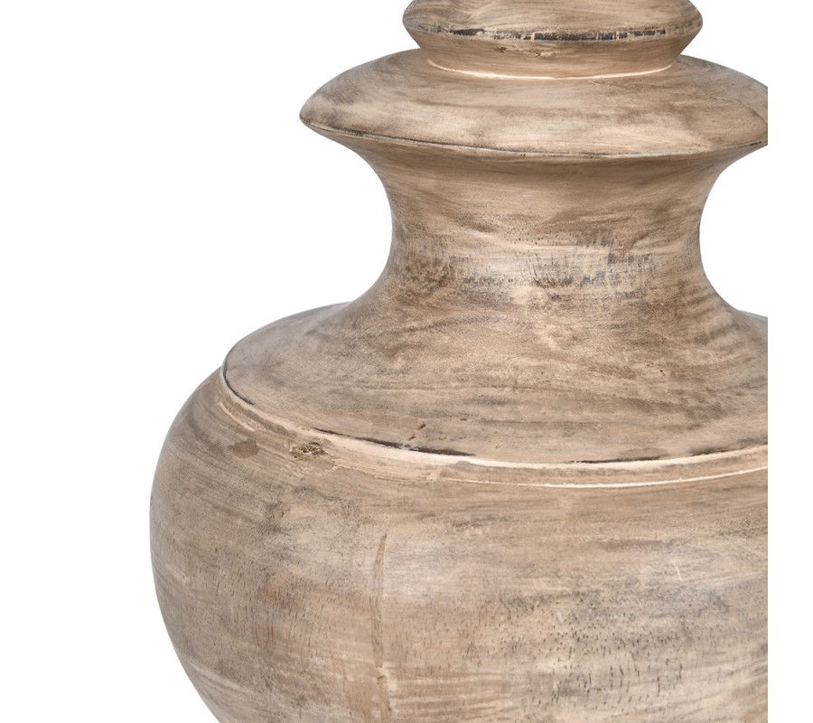 Dizajnová stolná lampa Dawn prináša do interiéru prirodzený šarm a eleganciu vidieckeho štýlu. Podstavec lampy je vyrobený z masívneho mangového dreva a vyznačuje sa sústruženým dizajnom s jemne zaoblenými krivkami. Povrch dreva má matnú úpravu s prirodzeným opotrebovaním a viditeľnými detailmi, ktoré zdôrazňujú remeselnú prácu a tradičný charakter.
