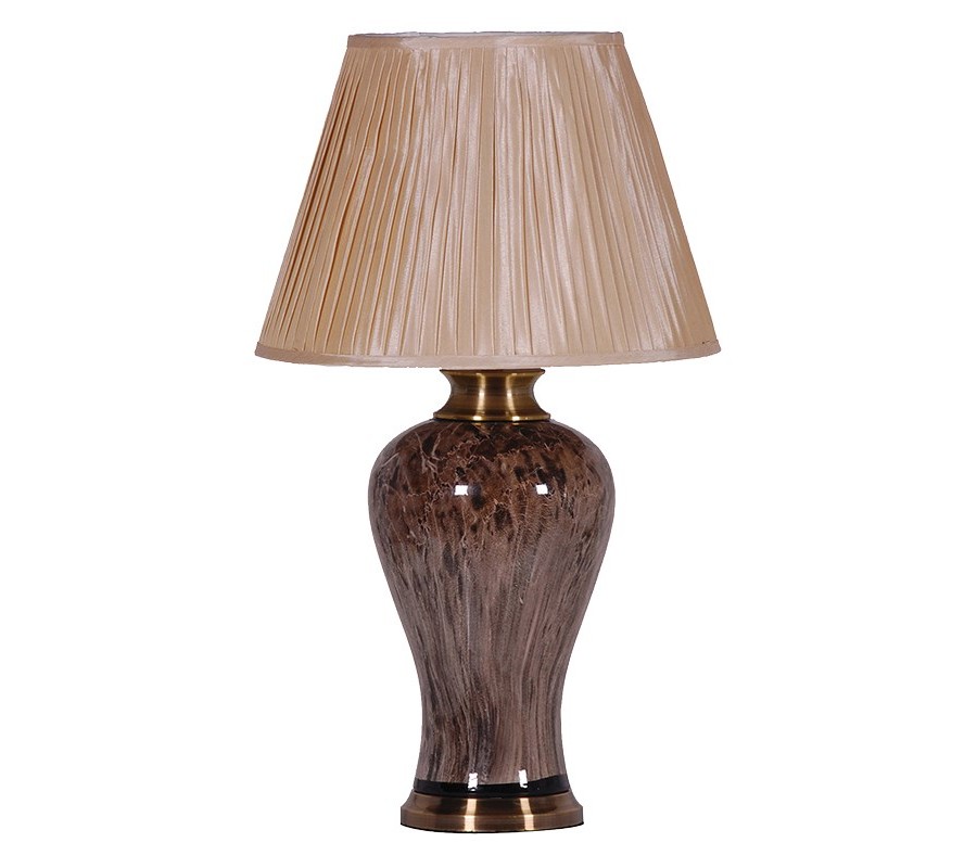 Vintage hnedá keramická stolná lampa Celestia s mramorovým vzhľadom detailami zlatej farby a zriaseným tienidlom 73cm
