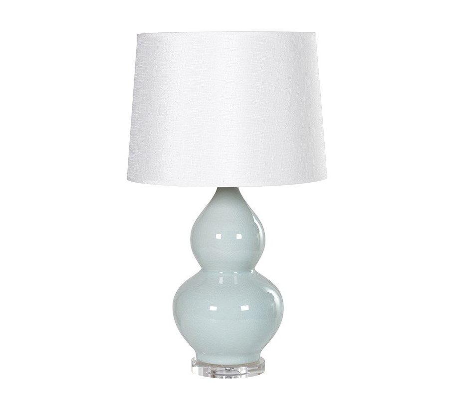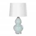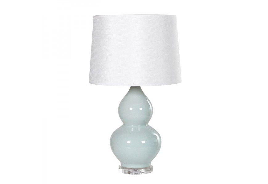 Retro porcelánová bledomodrá stolná lampa Prentice I s bielym tienidlom a krištálovou podstavou 69cm