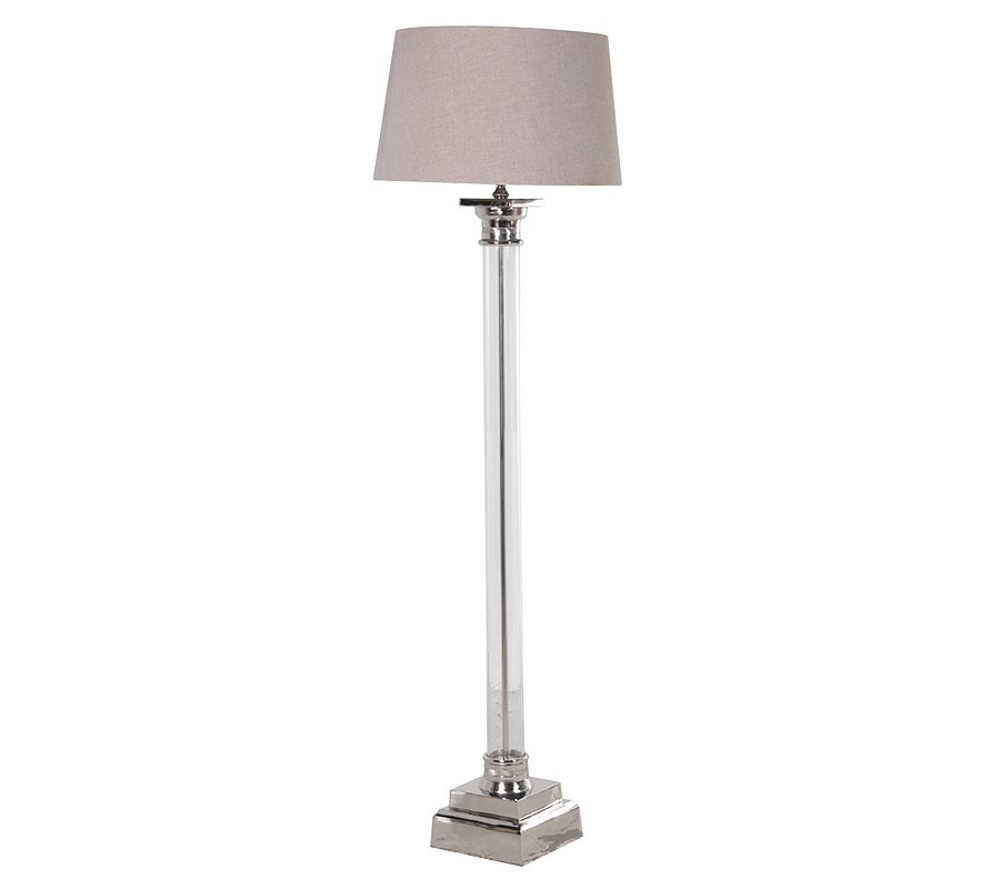 Štýlová stojaca lampa Lafayette predstavuje kombináciu luxusného art-deco vzhľadu, kvalitných materiálov a elegantného prevedenia. Tento kúsok sa bude nádherne vynímať v moderných priestoroch obývačiek, spální či pracovní, a okrem zaujímavého dizajnu vás poteší príjemným jemne tlmeným svetlom vhodným na dotvorenie útulnej večernej atmosféry pri čítaní knihy či sledovaní filmu. Konštrukcia lampy kombinuje priehľadné sklo a kovový základ v podobe podstavy a ozdobnej vrchnej časti, vďaka čomu dostáva zaujímavý nadčasový nádych art-deco štýlu. Priehľadno-striebornú konštrukciu dopĺňa jemné béživé bavlnené tienidlo. Kombinácia oblých a hranatých tvarov a univerzálna farebnosť vytvára moderný vzhľad, ktorý vhodne doplní váš interiér a dá sa poľahky kombinovať so širokou škálou štýlov, materiálov aj odtieňov!