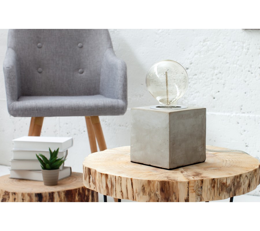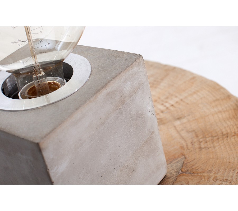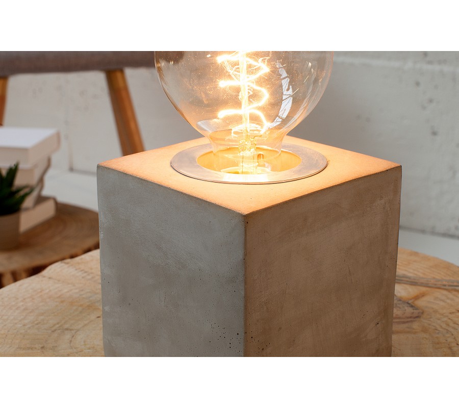 Lampa má podstavu vyrobenú z betónu v tvare kocky. Vo vrchnej časti je zabudovaná úchytka na žiarovku typu E27, ktorá nie je súčasťou balenia. Povrch podstavy je matný, s jemnou štruktúrou betónu v zemitom hnedom odtieni. Odporúčame kombinovať s dizajnovými žiarovkami s dekoratívnym vláknom, ktoré podčiarknu industriálny charakter nábytku.