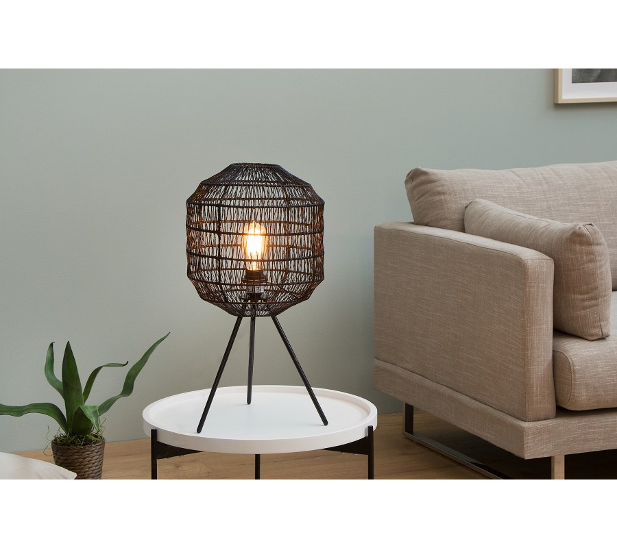 Dizajnová stolná lampa Cage v čiernej farbe je ideálna do priestorov ladených vo svetlých farbách. Lampa má kovovú konštrukciu a tienidlo v tvare klietky je vyrobené z papiera.