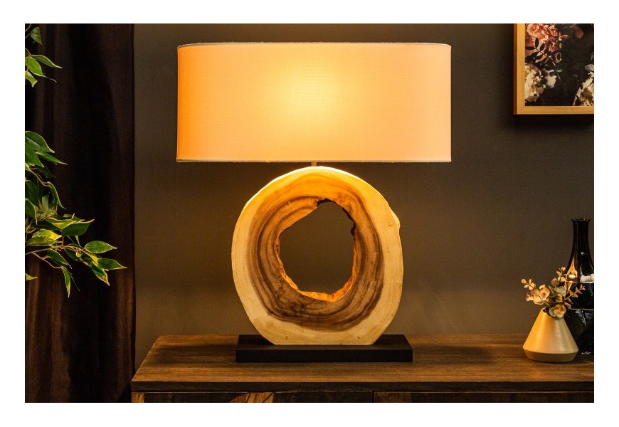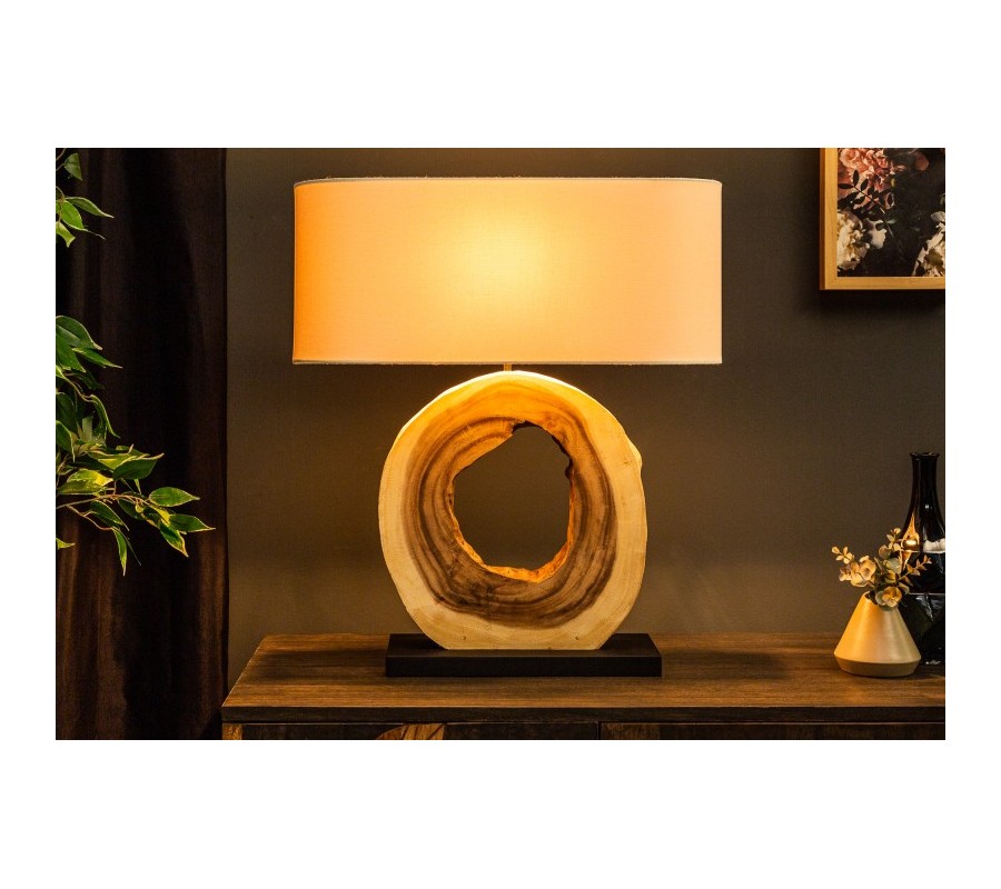 Jedinečná stolná lampa Alaska je skvelým kúskom do každej industriálne a štýlovo zariadenej domácnosti. Jej originálny dizajn vás zaručene zaujme a váš interiér doslova rozžiari. Lampa Alaska disponuje podstavcom vyrobeným z masívneho orechového dreva. Vďaka svojmu tvaru pripomínajúcemu prierez kmeňa stromu k vám vnesie nádych prírody. Béžové tienidlo kruhového tvaru príjemne dopĺňa podstavec a spolu tak vytvárajú štýlovú a vkusnú kombináciu, ktorá sa hodí skutočne kamkoľvek. Vďaka nemu je taktiež svetlo príjemne tlmené a mäkké. Vhodné sú žiarovky E27 max. 60W energetických tried A ++ až E. Produkt dodávame bez žiarovky.