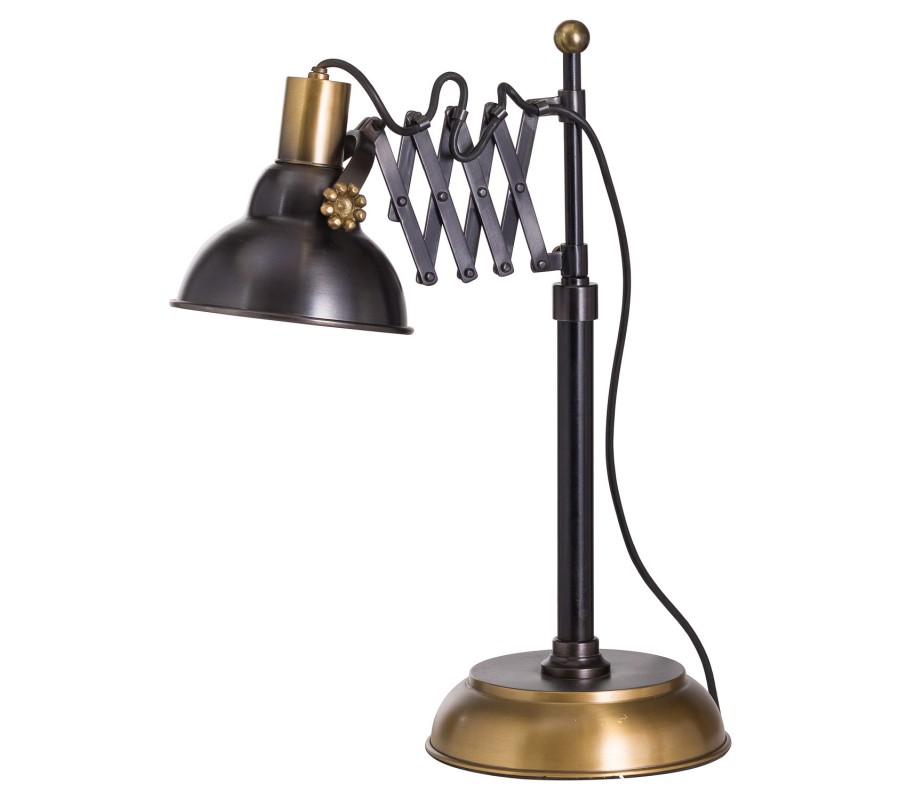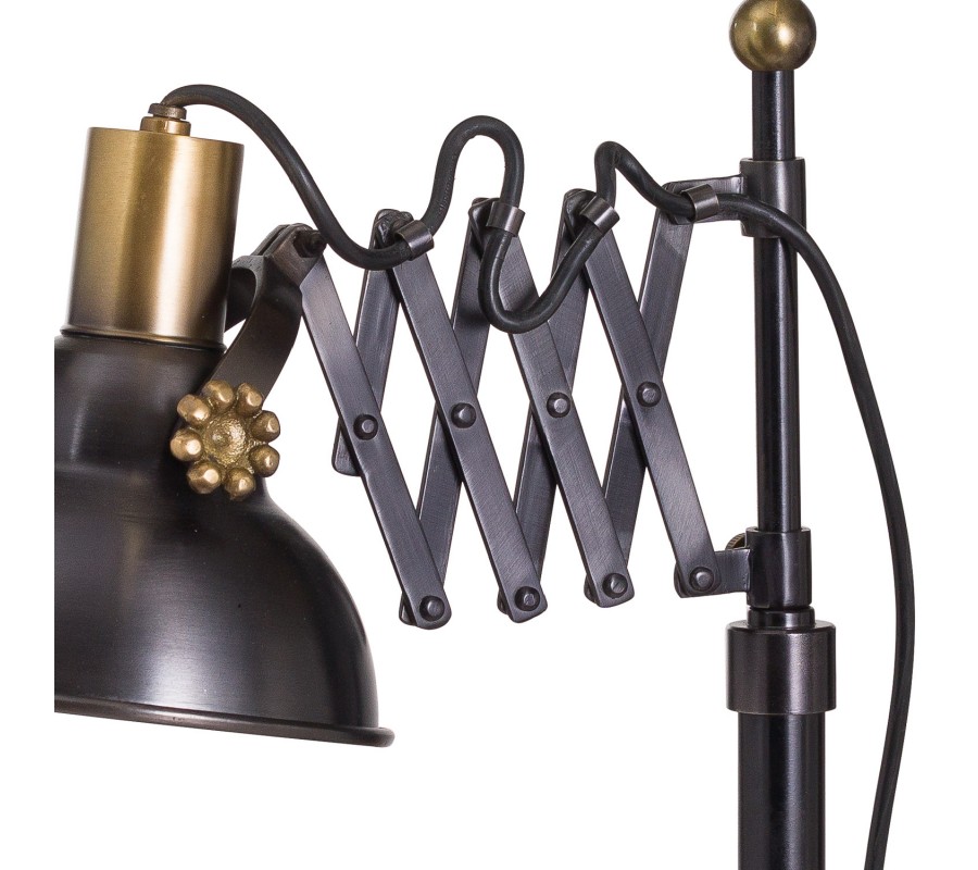 Industriálna čierna kovová pracovná lampa Estrada s mosadznými prvkami 49cm