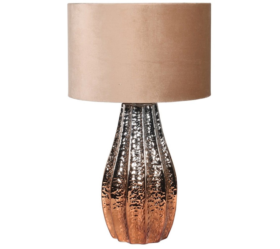 Luxusná nočná lampa Camrose je jedinečným kúskom v art-deco štýle. Svojím luxusným prevedením rozžiari každú štýlovú obývačku či spálňu. Bronzová farba keramickej konštrukcie je doplnená o unikátne béžové tienidlo zo zamatu. Do lampy sú vhodné žiarovky typu E27 max 40W.