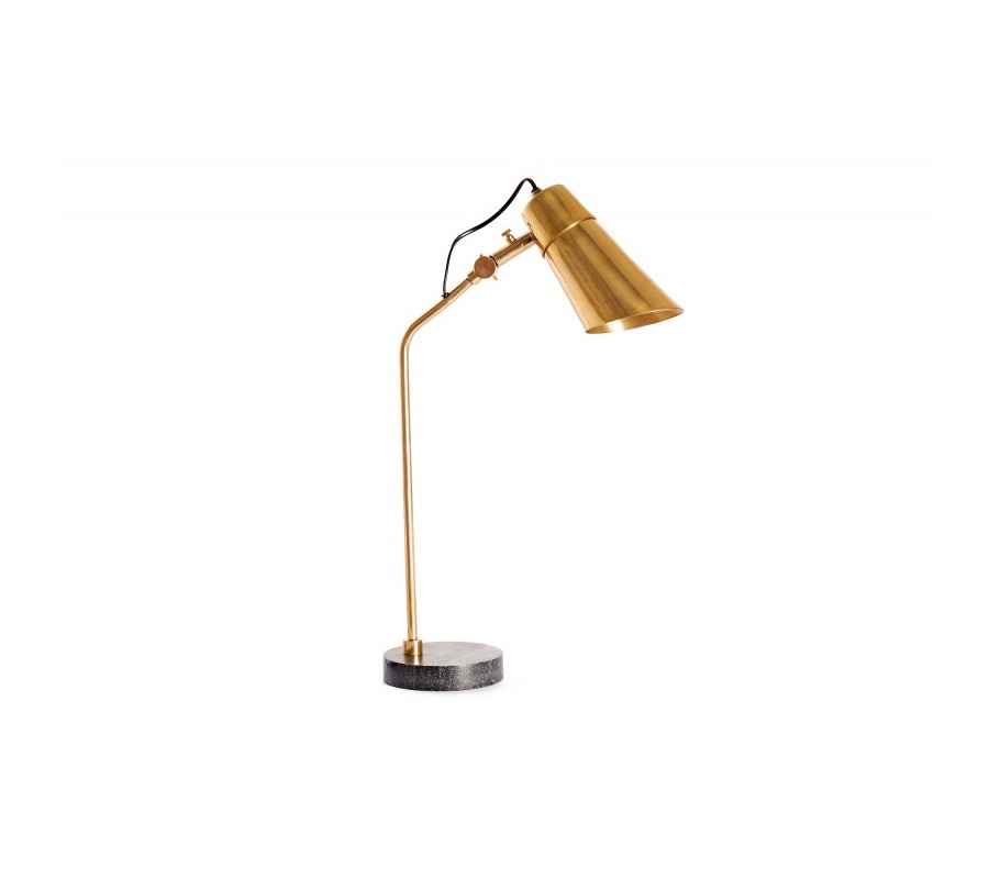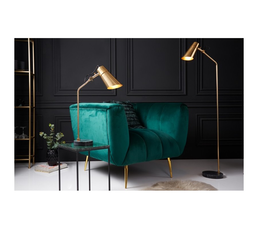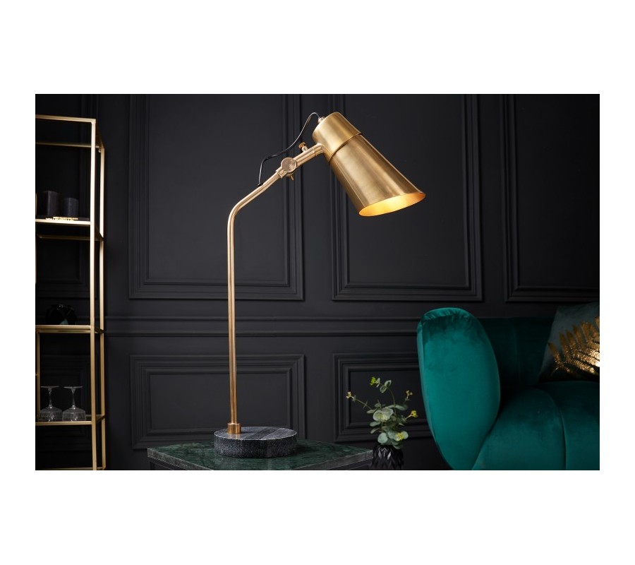 Dizajnová stolná lampa Bramante predstavuje moderné svietidlo nesúce sa v štýle art-deco. Jej konštrukcia je vyrobená z kovu a nesie sa v žiarivej zlatej farbe, ktorá do vašich priestorov vnesie luxusný nádych. Konštrukciu dopĺňa kruhová podstava z mramoru v odtieňoch sivej. Zaujímavý valcovitý tvar tienidla je nielen vizuálne príťažlivý, ale dopomôže k presnejšiemu nasmerovaniu svetla. Lampa Bramante je teda vhodná najmä na čítanie alebo na prácu. Vynikne predovšetkým v priestoroch ladených v štýle art-deco, pre ktorý sú typické výrazné farby, materiály ako kov či sklo, geometrické tvary a výrazné doplnky v zlatej farbe. Luxusnú kombináciu vytvorí napríklad s čalúneným zamtovým kreslom a mramorovým alebo zrkadlovým stolíkom.