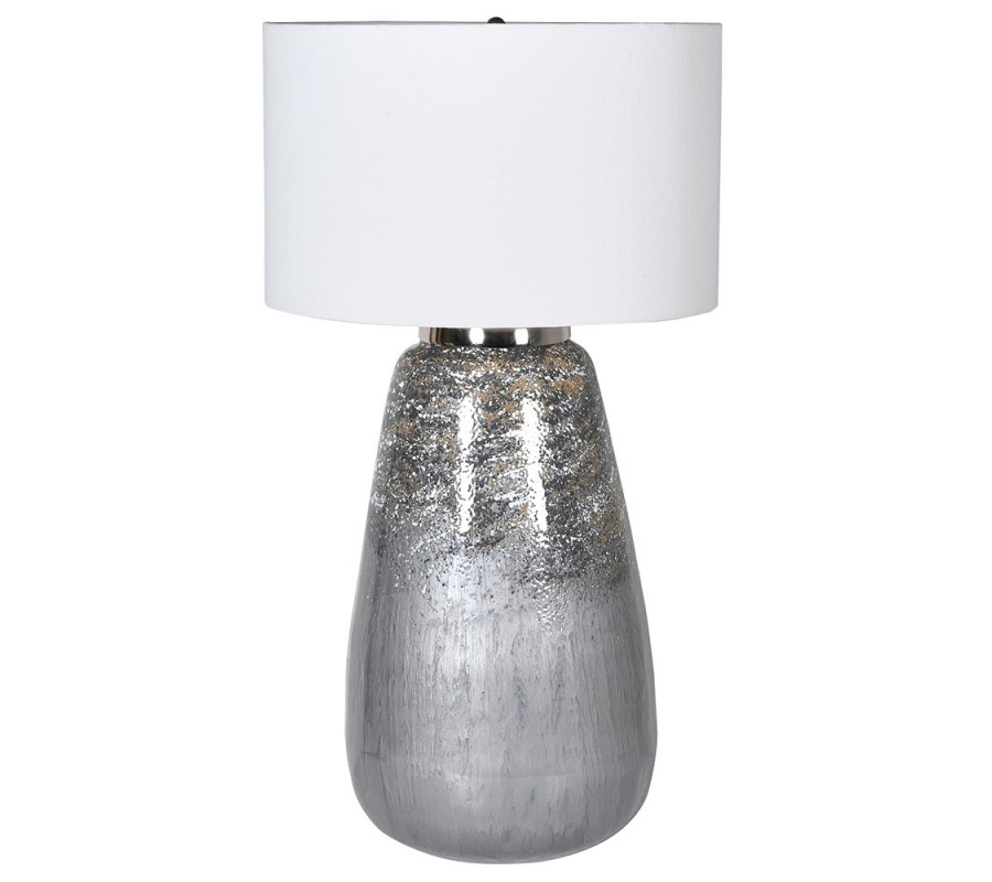 Vintage sklenená strieborno-biela stolná lampa Olenna s bavlneným snehobielym tienidlom 73cm